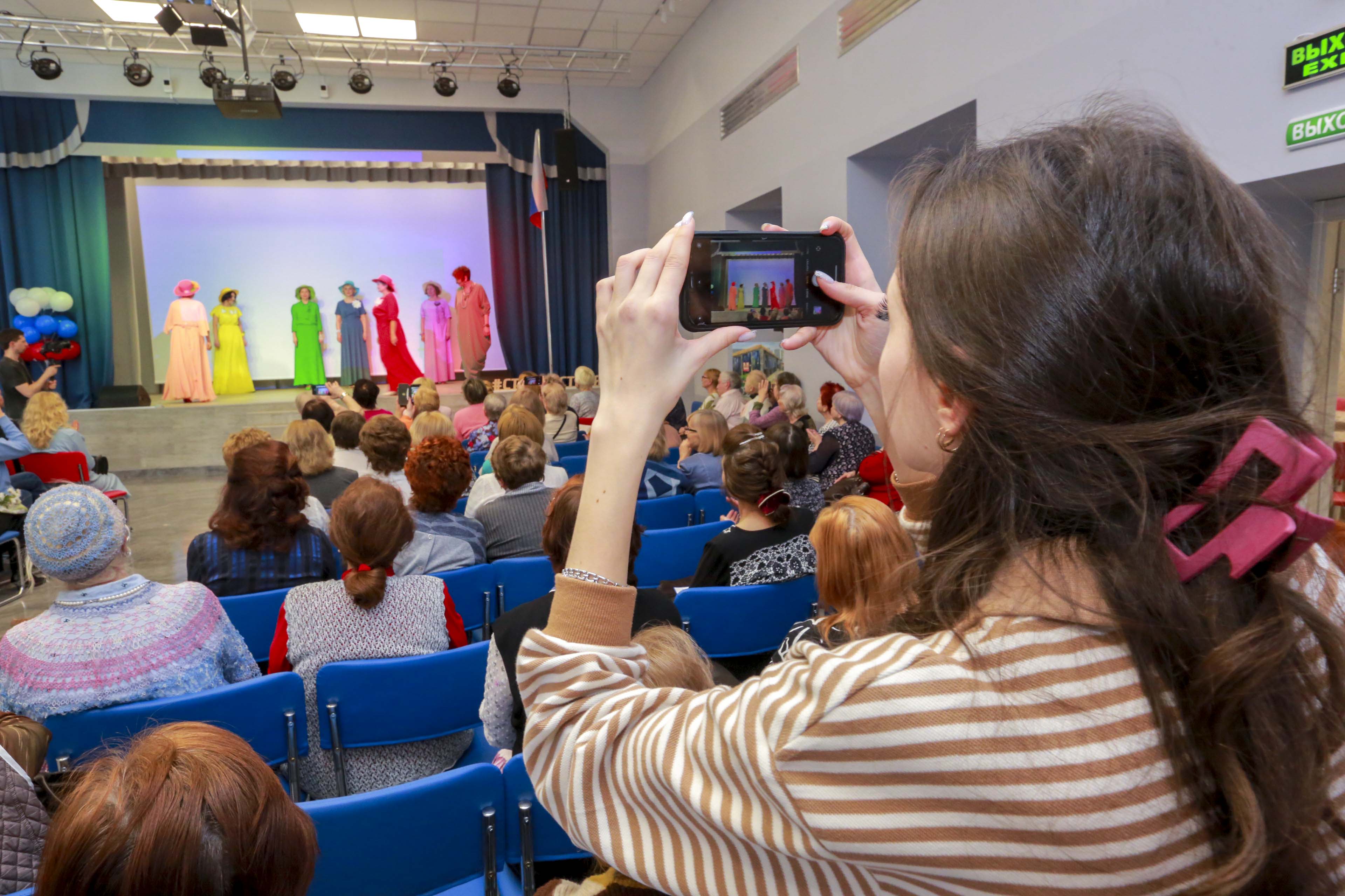 Возрастные модели вышли на сцену в дефиле-спектакле. Наряды сшили из вещей, которые были куплены много лет назад и уже не подходят владелицам по размеру.