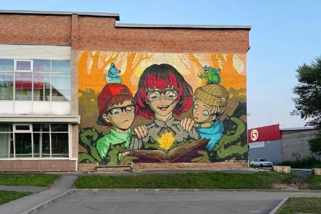 Евгений Борисов: Парусником с маяком на фасаде дома №37а на улице Семьи Шамшиных и росписью стены детской библиотеки в Сузуне — тоже большая работа, выполненная при поддержке волонтёров культуры (они нам выделили краску).