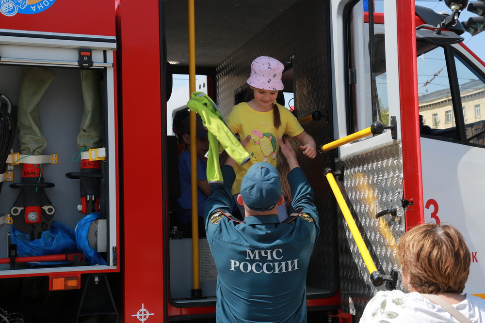 В числе точек притяжения — площадка с пожарным автомобилем. Сотрудники МЧС показали его оснащение и рассказали, для чего оно нужно. Параллельно проходил конкурс рисунков на асфальте и обучающие игры на пожарную тематику. Детям рассказали о том, как опасны шалости с огнём и как вызвать спасение по телефону, если случилась беда.