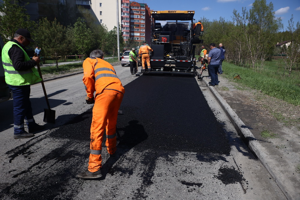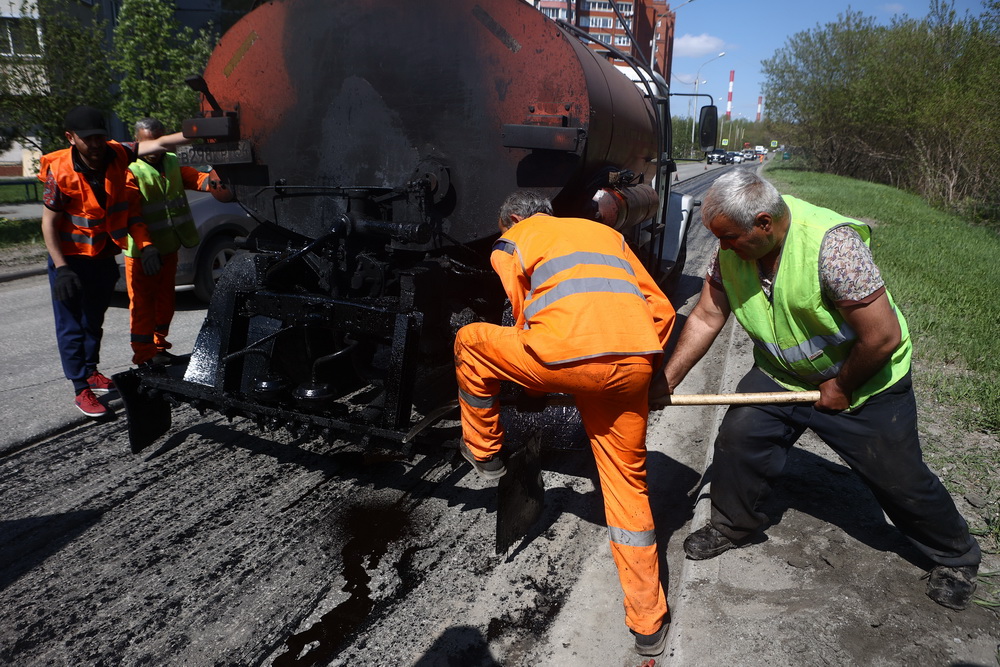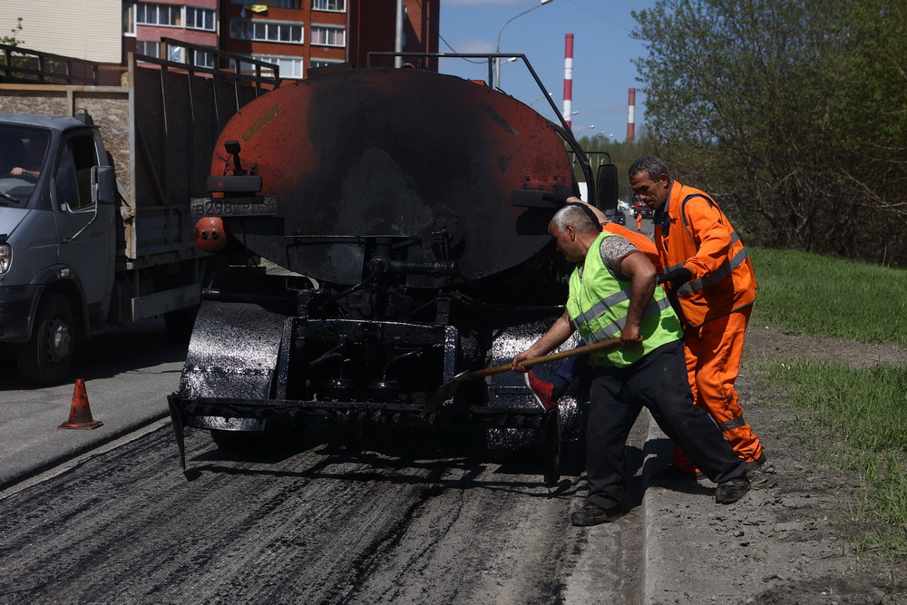 «ГОСТы меняются. У ямочного ремонта вообще два года гарантия. Технология укладки классическая. В первую очередь производим фрезерование, снятие старого асфальта на определённую толщину, у нас 5–7 сантиметров по смете. Потом очистка от грязи и пыли, разливаем эмульсию, укладываем асфальт и уплотняем катками», — описал процессы Роман Бабаев.