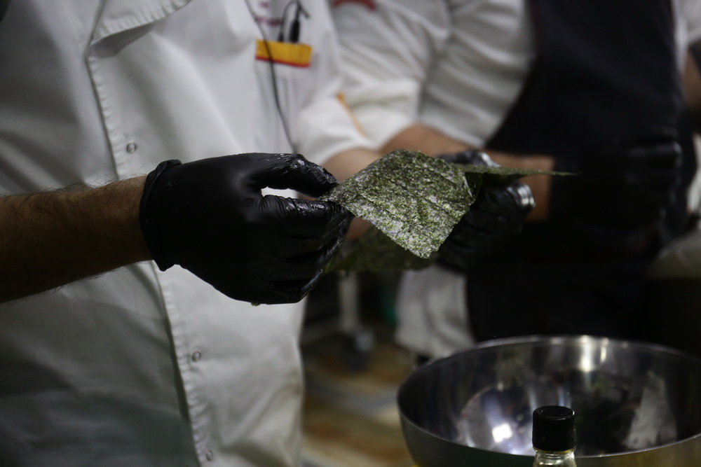 В режиме онлайн Сибата Комей начинает готовить онигири. Параллельно на кухне в Новосибирске шеф и су-шеф пошагово дублируют его действия. Используют аутентичные продукты, чтобы блюдо не стало русифицированным и передавало вкус японской еды. Рис, например, привезли из восточной Азии.