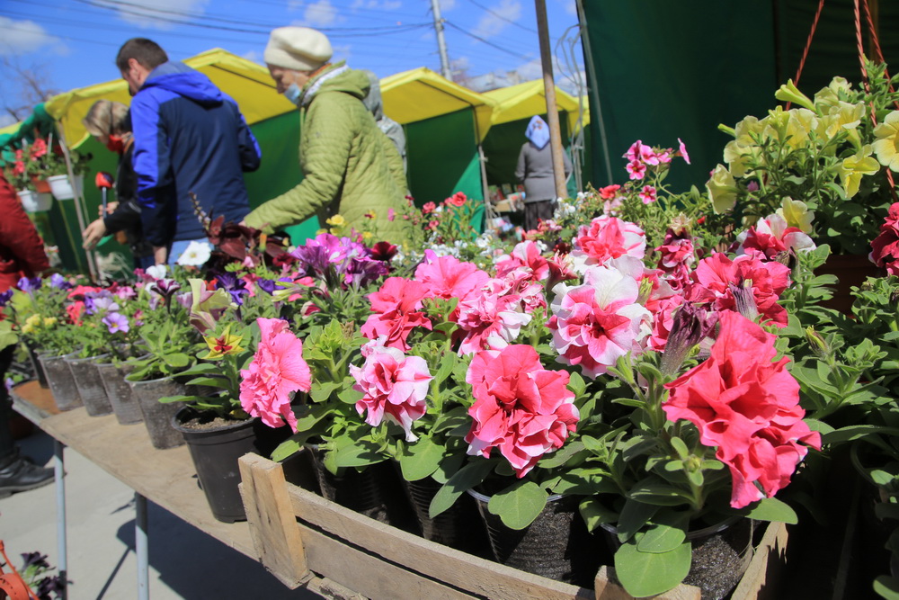 Петунии и плетёные ивы привезли на ярмарку возле ДК «Чкаловец»