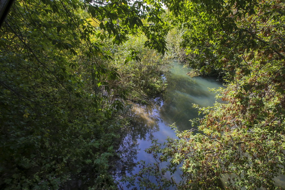 От колодцев до выхода около километра. Сегодня здесь нет запаха, вода бежит чистая. Но о том, что канализационные сбросы всё-таки были, свидетельствует налёт и мусор, которого в ливнёвке просто быть не может.