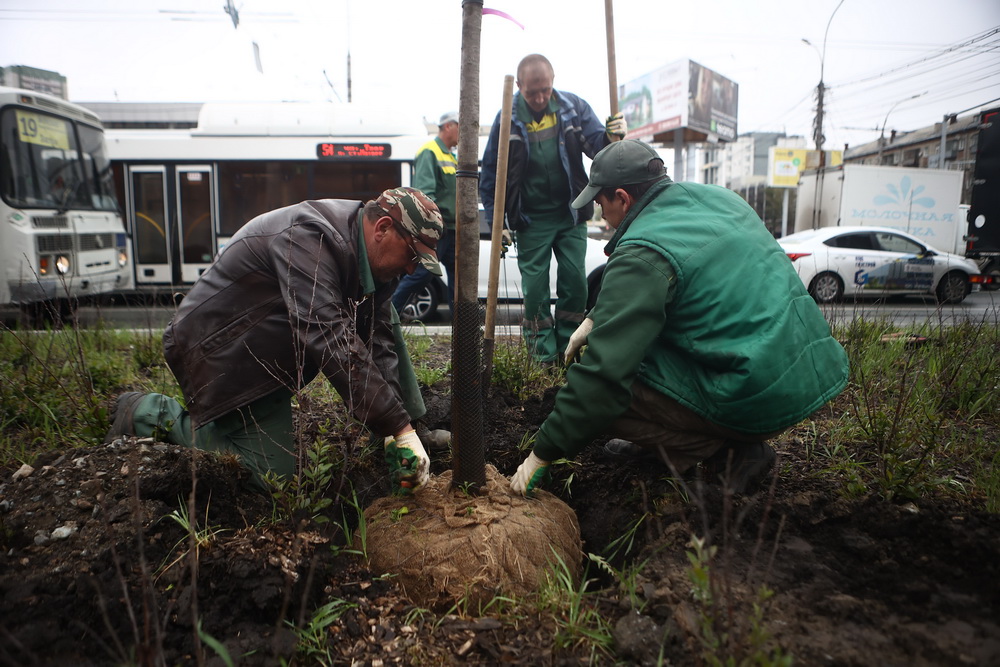 «Завершаем озеленение»: ещё 14 лип высадили на Вокзальной магистрали