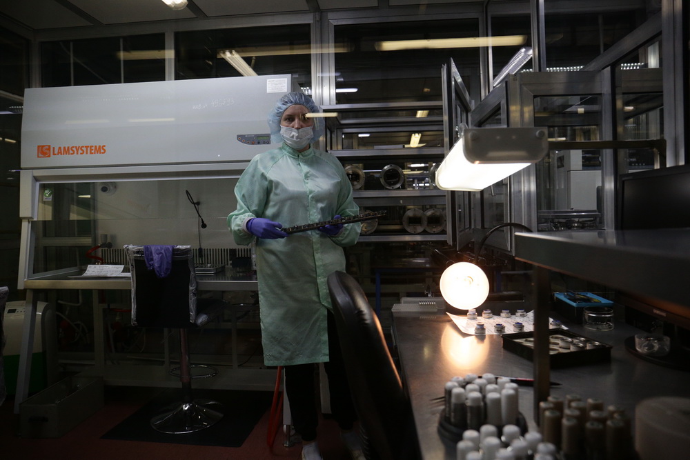«Здесь мы создаём сердце приборов ночного видения — электронно-оптический преобразователь», — рассказывает работница завода.