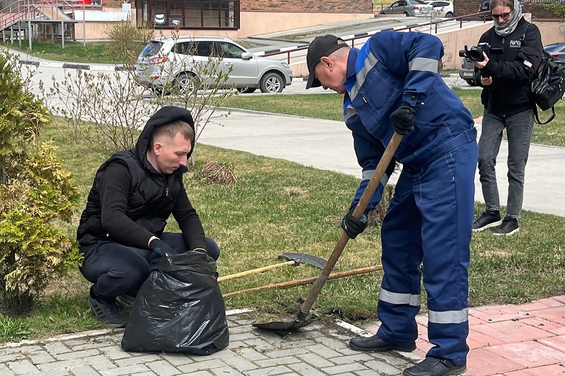 Жители Акатуйского навели чистоту возле памятного камня Виктору Усу