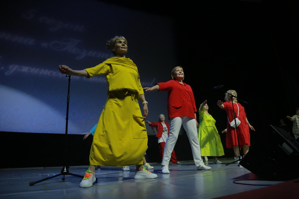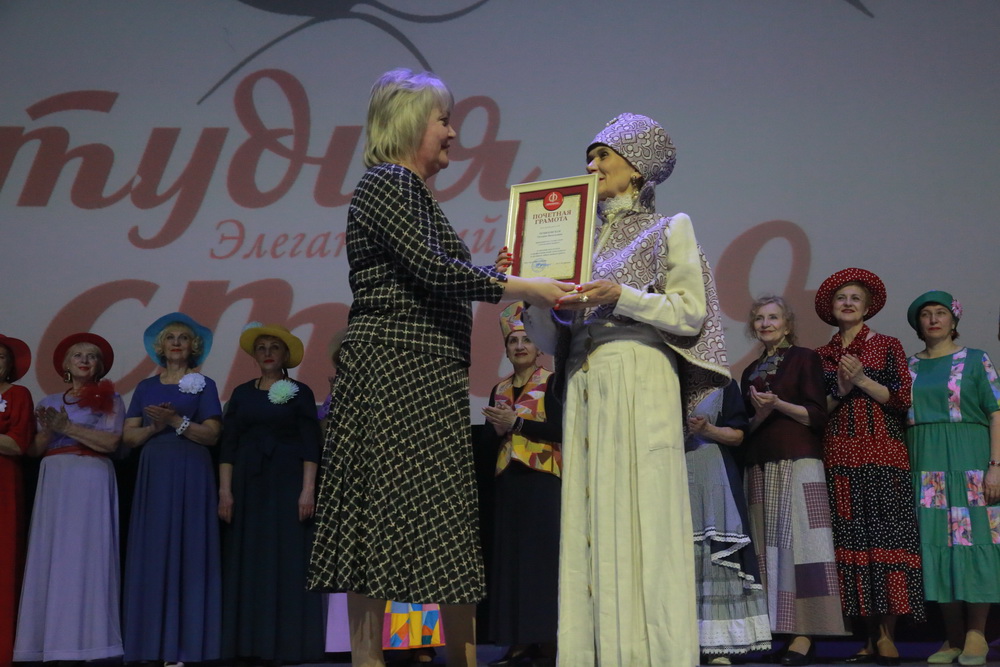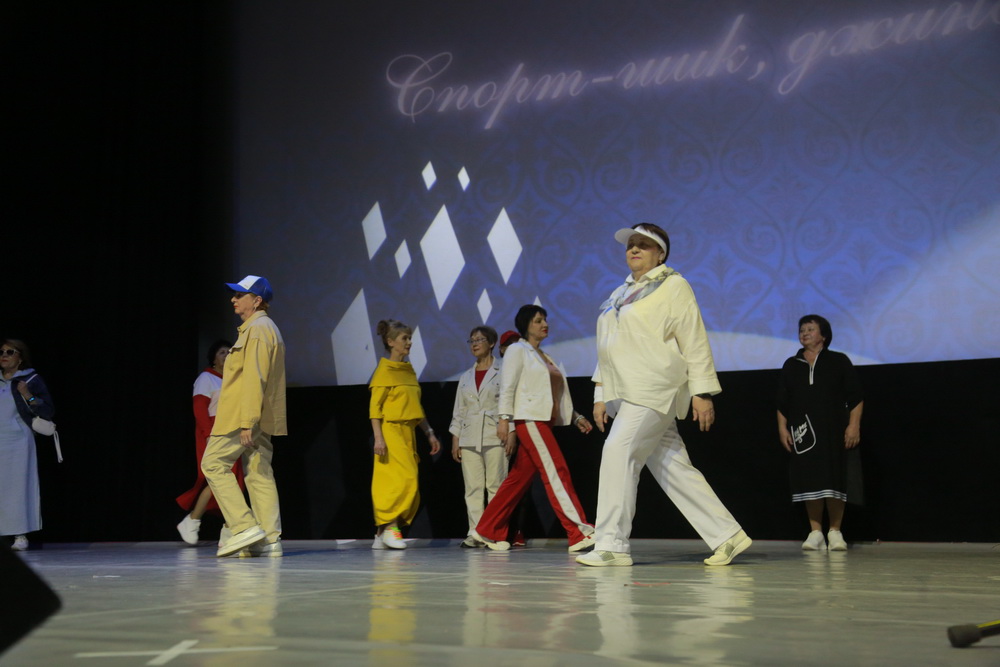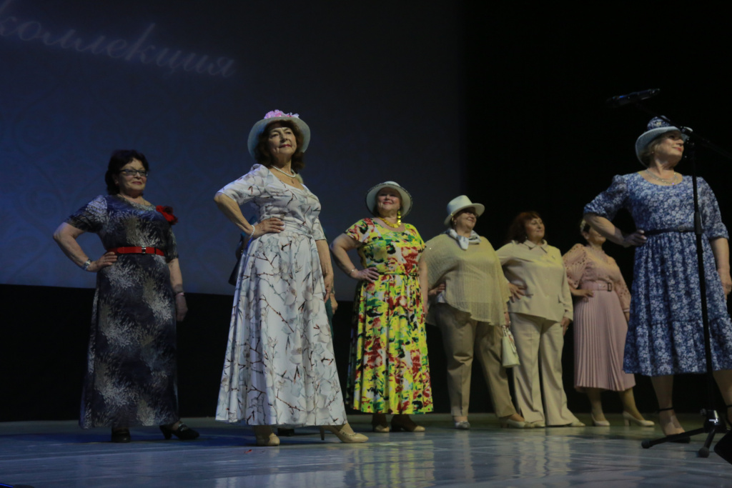 Когда трудовые подвиги закончены, дети с внуками выращены, настаёт время, которое можно уделить себе. Этому редкому навыку и учат в студии стиля «Элегантный возраст». Сегодня, 21 мая, выпускники с размахом отметили её пятилетний юбилей. Три сотни элегантных дам и джентльменов вышли на подиум концертного комплекса имени Маяковского.