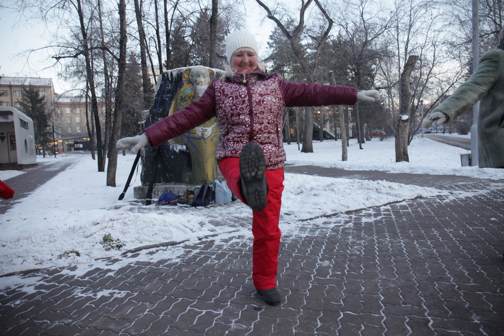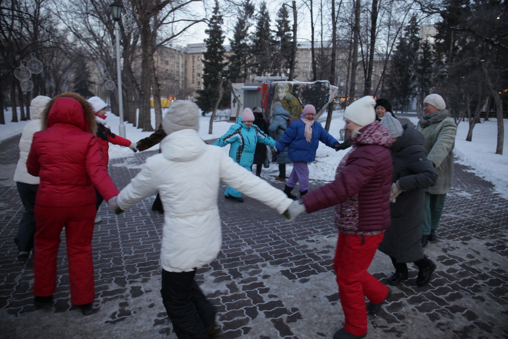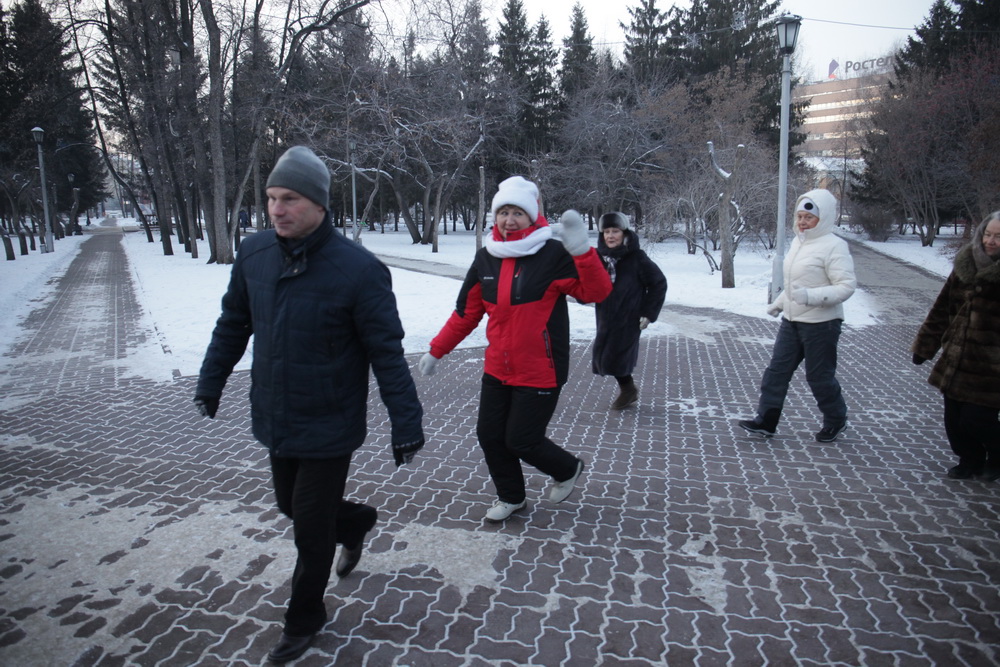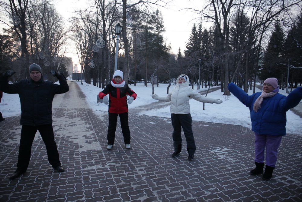 Зимняя зарядка: новосибирцы растянули позвоночник в Первомайском сквере