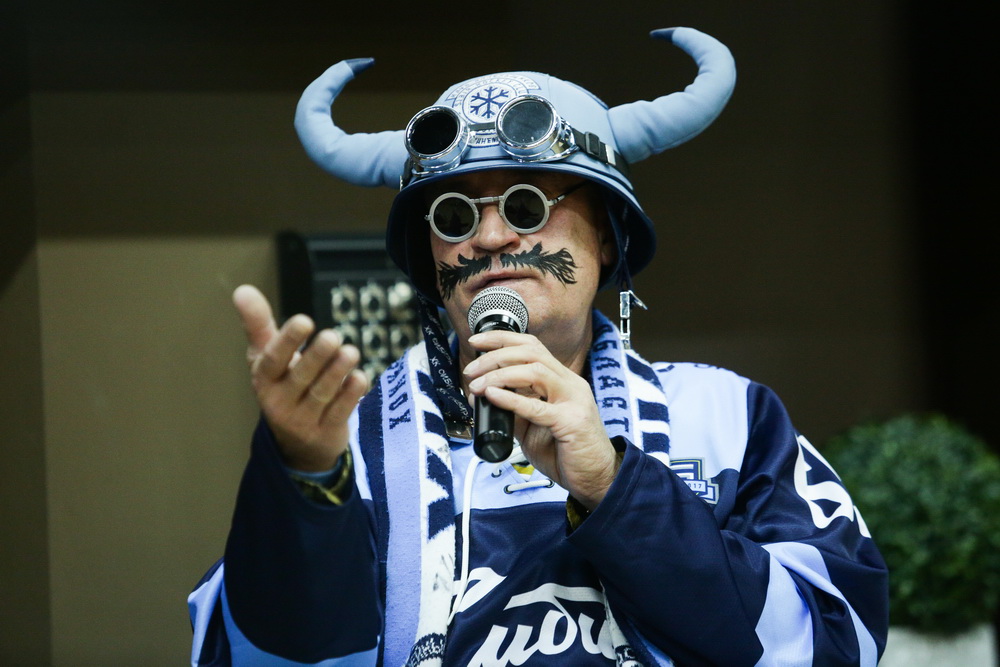 Дмитрий Казанцев — так зовут одного из самых страстных болельщиков новосибирского хоккейного клуба «Сибирь», которого любители хоккея знают как «Усатого в каске». С 2014 года он не пропускает ни одного матча любимого клуба. Благодаря голубой каске с рогами, яркой кофте, чёрным очкам в блестящей оправе и шикарным нарисованным усам Дмитрия видно издалека. 8 октября в Новосибирской областной библиотеке фанат «Сибири» встретился со своими фанатами на проекте «Люди как книги» — и рассказал, через что ему пришлось пойти, чтобы стать «Усатым в каске».