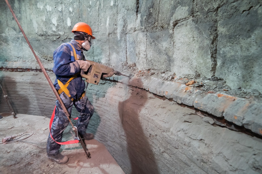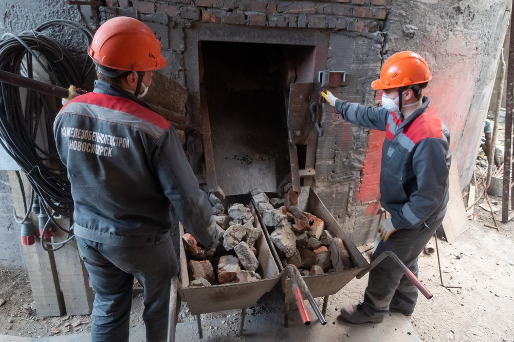 Рабочим пришлось разобрать 100 кубических метров кирпичной кладки трубы и сварить 14 тонн арматуры, чтобы уложить на неё керамзитобетон — более крепкий и надёжный, чем кирпич. Такой слой будет теперь защищать дымовую трубу от перегрева и повреждений.