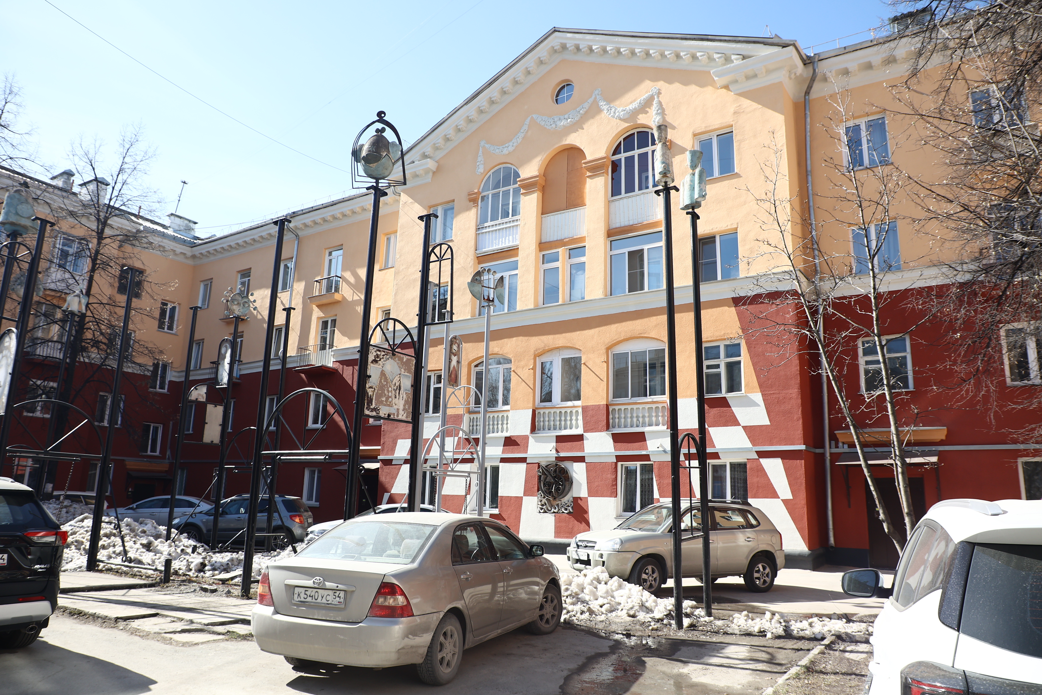 Сегодня, 30 апреля, глава города осмотрел здания на Богдашке, которые обновляли в прошлом году. Среди них — знаменитый дом в 1-м Краснодонском переулке, 9. Его построили в середине 1940-х годов, а в восьмидесятые мастерская «Красная горка» оформила двор и стены сталинки в стилистике произведения «Алиса в Стране чудес».