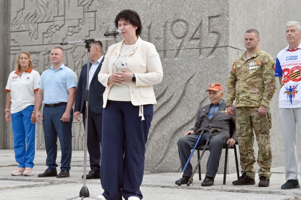 «Эстафета проходит и через Новосибирск, который носит высокое звание „Город трудовой доблести“. Его история неразрывно связана с подвигом советского народа, здесь также ковалась Победа», — обратилась к собравшимся Валентина Дудникова.