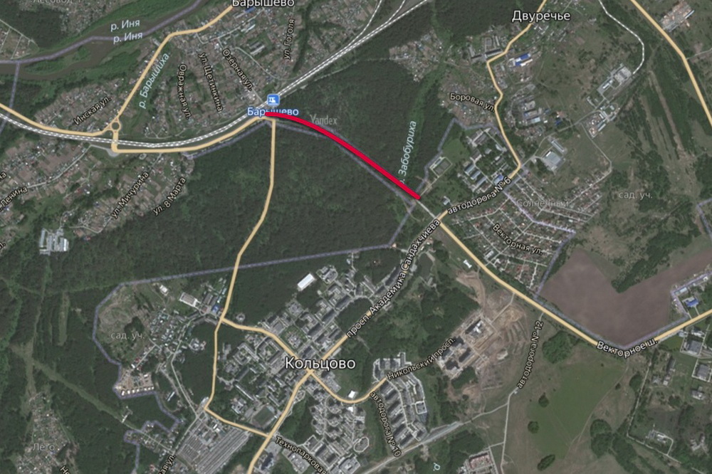 Второй этап строительства новой дороги начинается в районе ликвидированного железнодорожного переезда у остановочной платформы Барышево и заканчивается рядом с Новосибирской клинической районной больницей в Кольцово.
