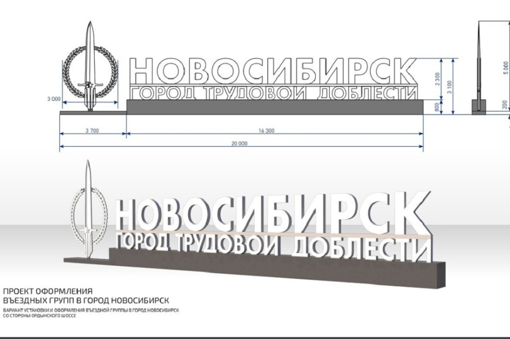 Из документа следует, что длина конструкции — 20 метров, максимальная высота — 5 метров. Надпись дополнит значок «Город трудовой доблести» с вертикальным мечом.