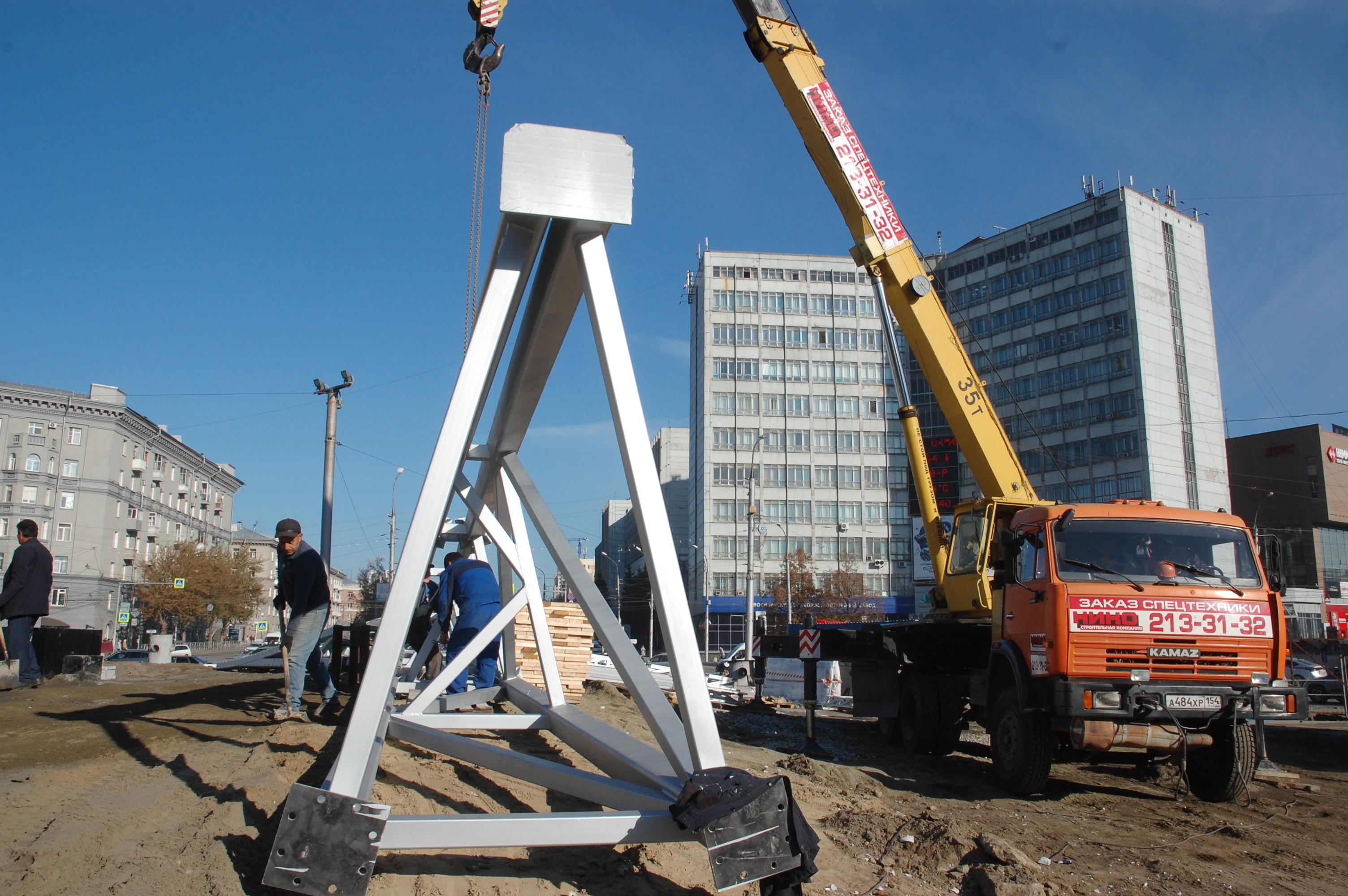 20-тонную стелу на площади Калинина смонтируют с помощью кранов