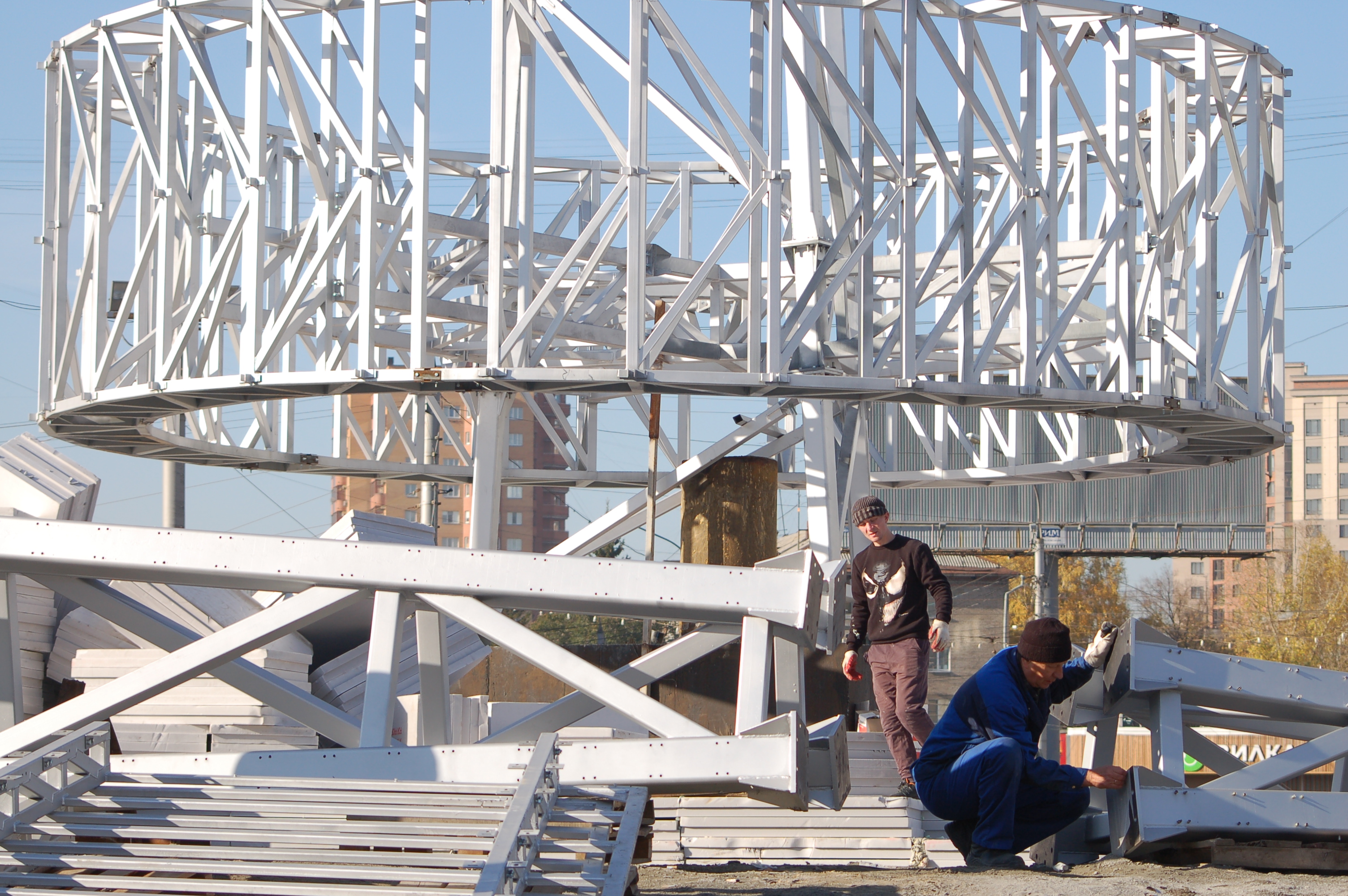 «Практически всю комплектацию стелы привезли на площадь Калинина. Предстоят тонкие работы. Во-первых, это стыковка всех частей самой несущей конструкции. Затем — навесное оборудование», — отметил мэр Новосибирска Анатолий Локоть.