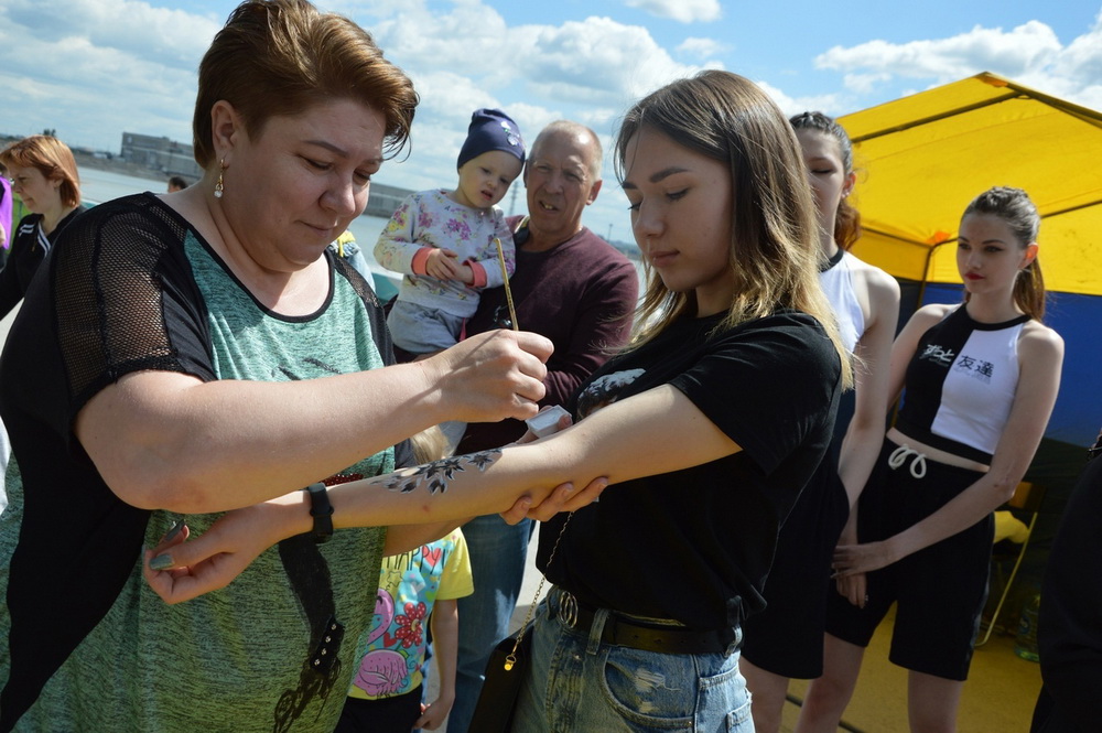 За любимым украшением — аквагримом — сразу выстроилась очередь желающих. Художник Елена Егорова предлагала разные варианты рисунков: от цветов до велотемы.