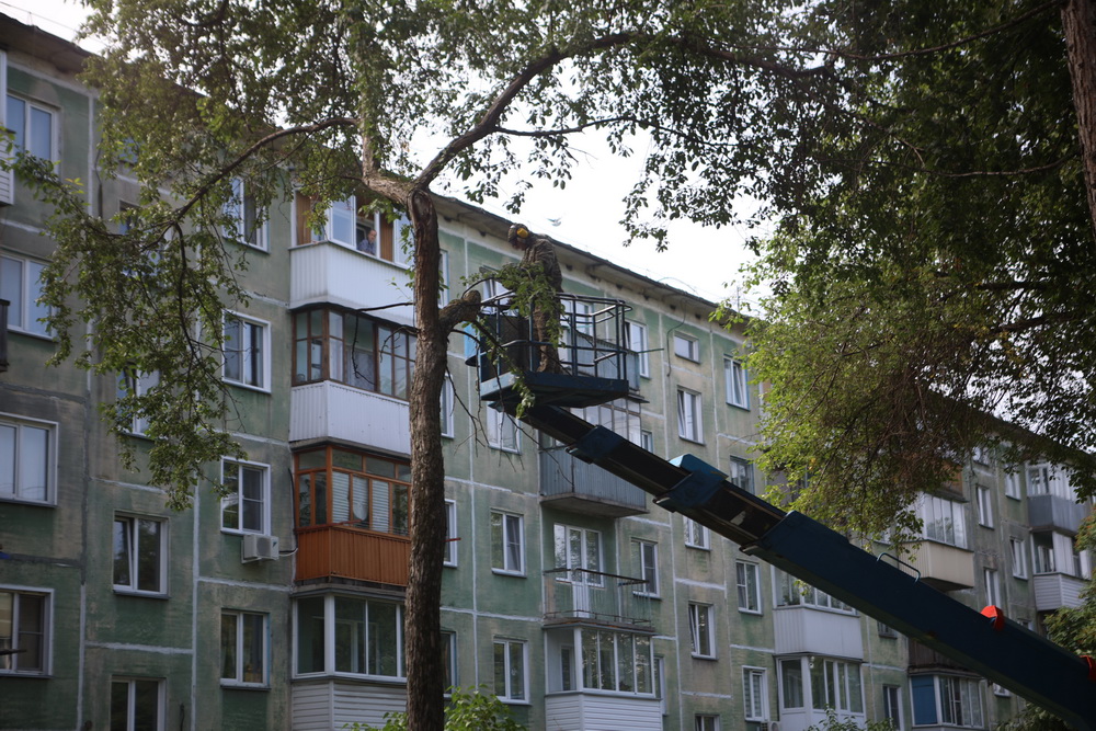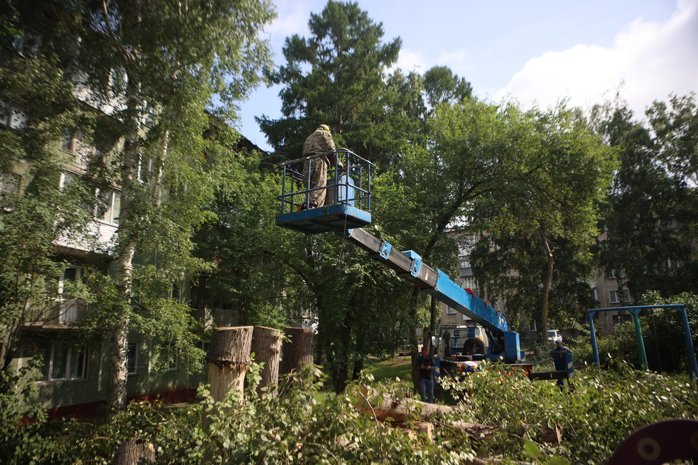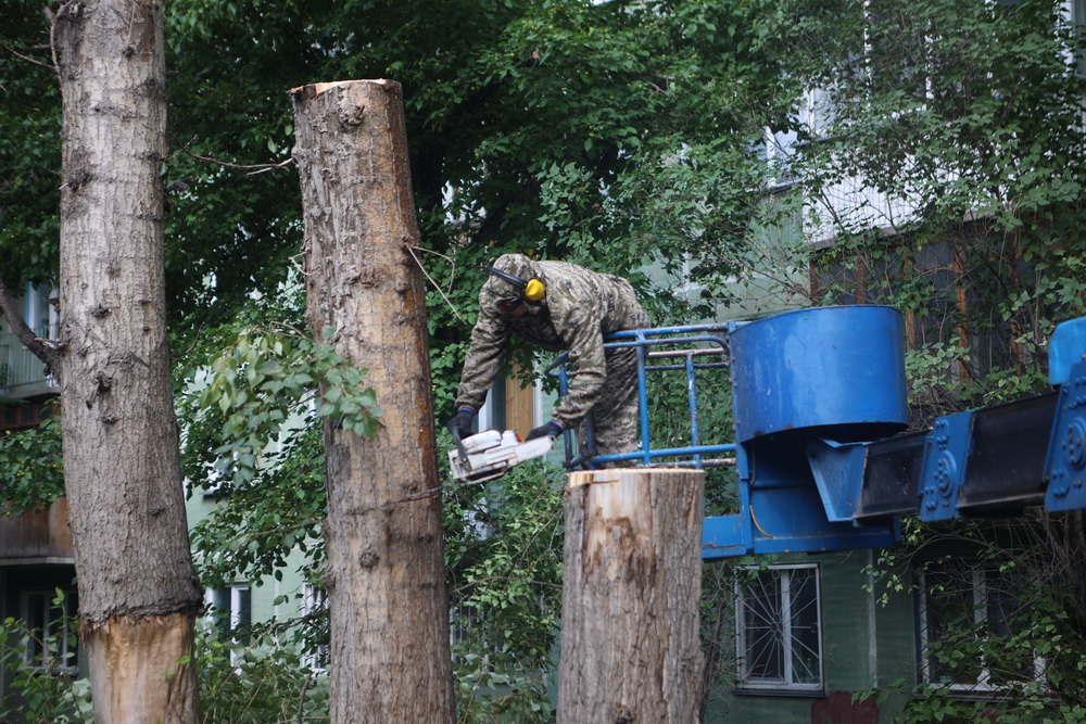 Аварийные тополя и яблони вырубили во дворе дома №63 на улице Есенина. За сезон такие работы планируют провести в 39 местах Дзержинского района. По 25 адресам это уже сделали.