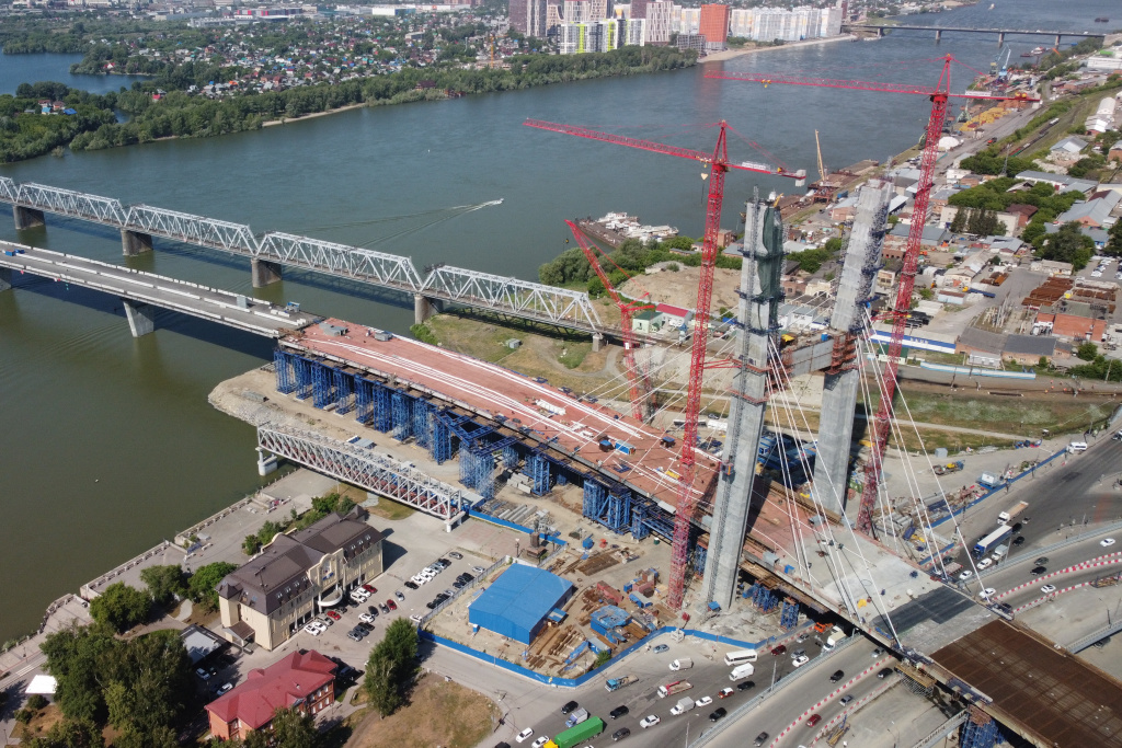 26 стальных вант смонтировали у четвёртого моста в Новосибирске
