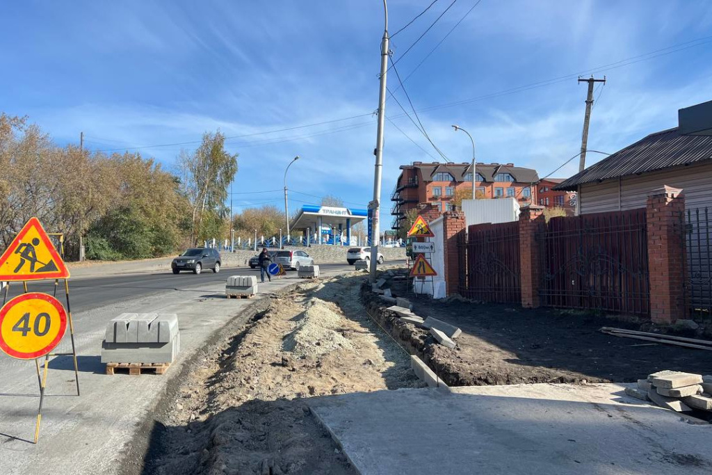 Одновременно старый остановочный павильон заменили на новый. Рядом с зелёной зоной отремонтируют тротуар и проезжую часть на улице Хитровской.