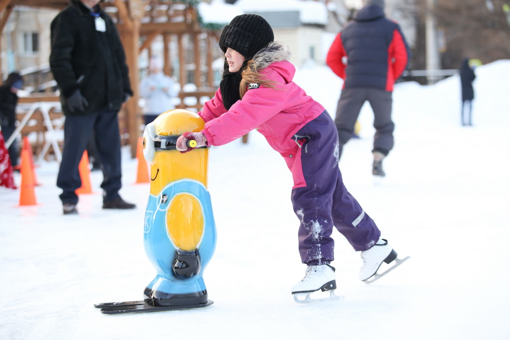 Рядом с ледовой площадкой работают тёплые раздевалки и прокат коньков. Час аренды инвентаря взрослым обойдётся в 350 рублей, детям и пенсионерам — в 200 рублей. Вход со своими коньками стоит 150–190 рублей.
