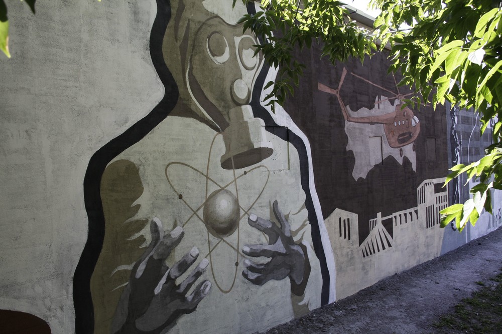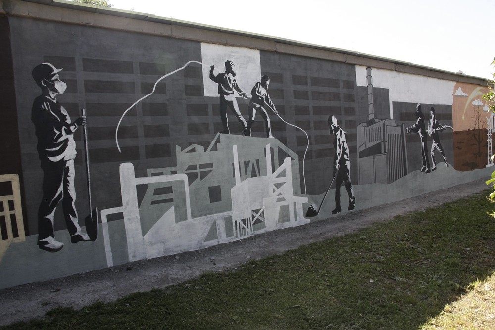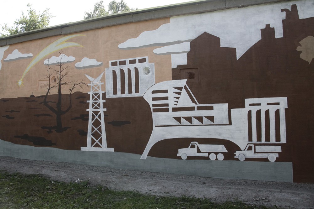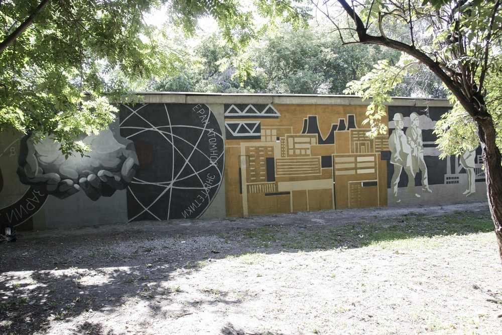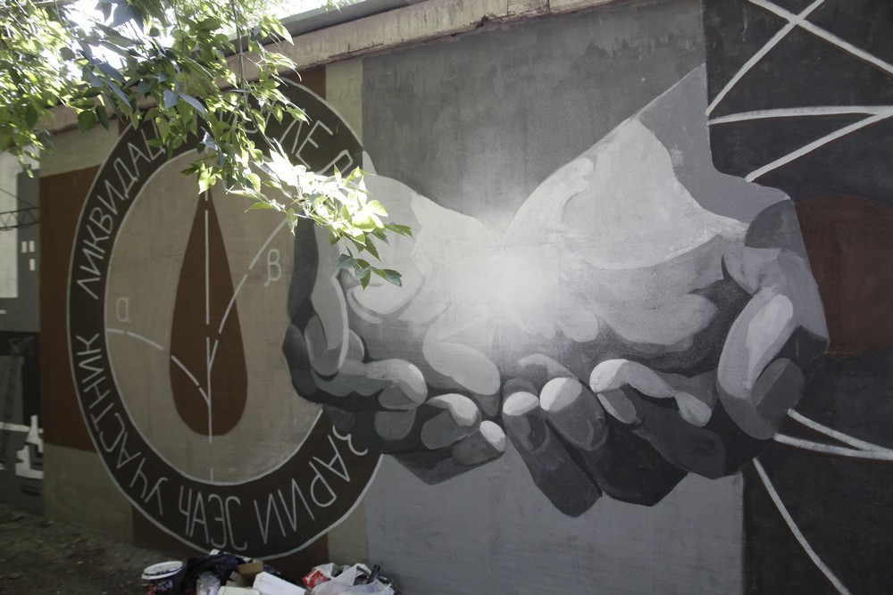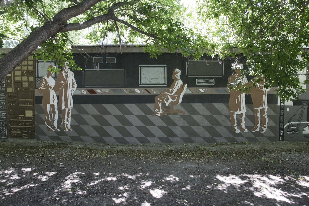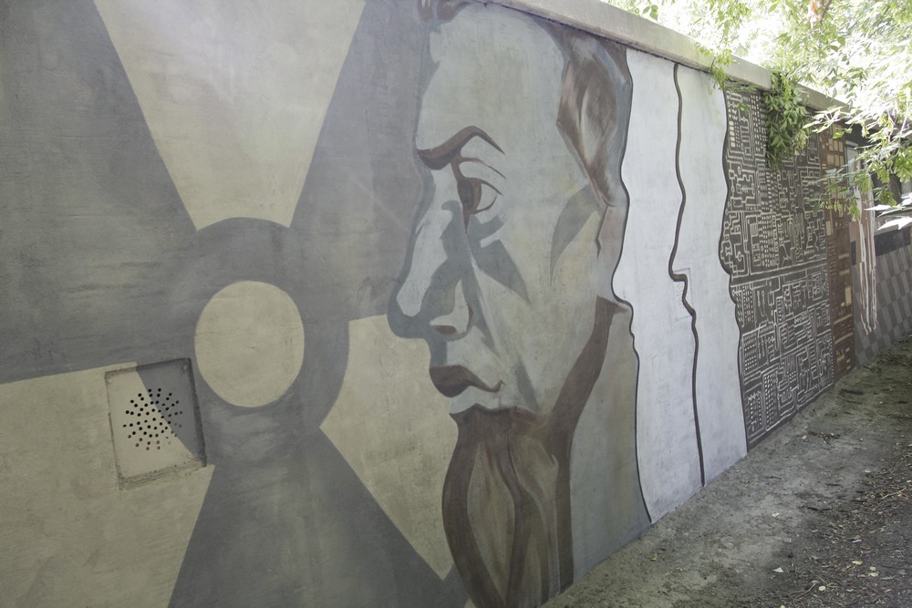 В сквере на улице Народной в Калининском районе завершается роспись стены высотой 2,8 метра и длиной 80 метров. Мурал посвящён отечественной атомной отрасли и ликвидации чернобыльской катастрофы.