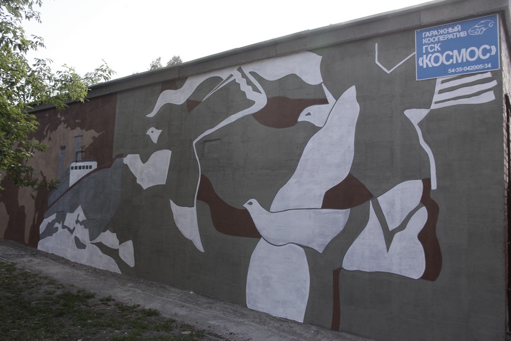 80-метровое панно нарисовали в сквере Покорителей атома в Новосибирске
