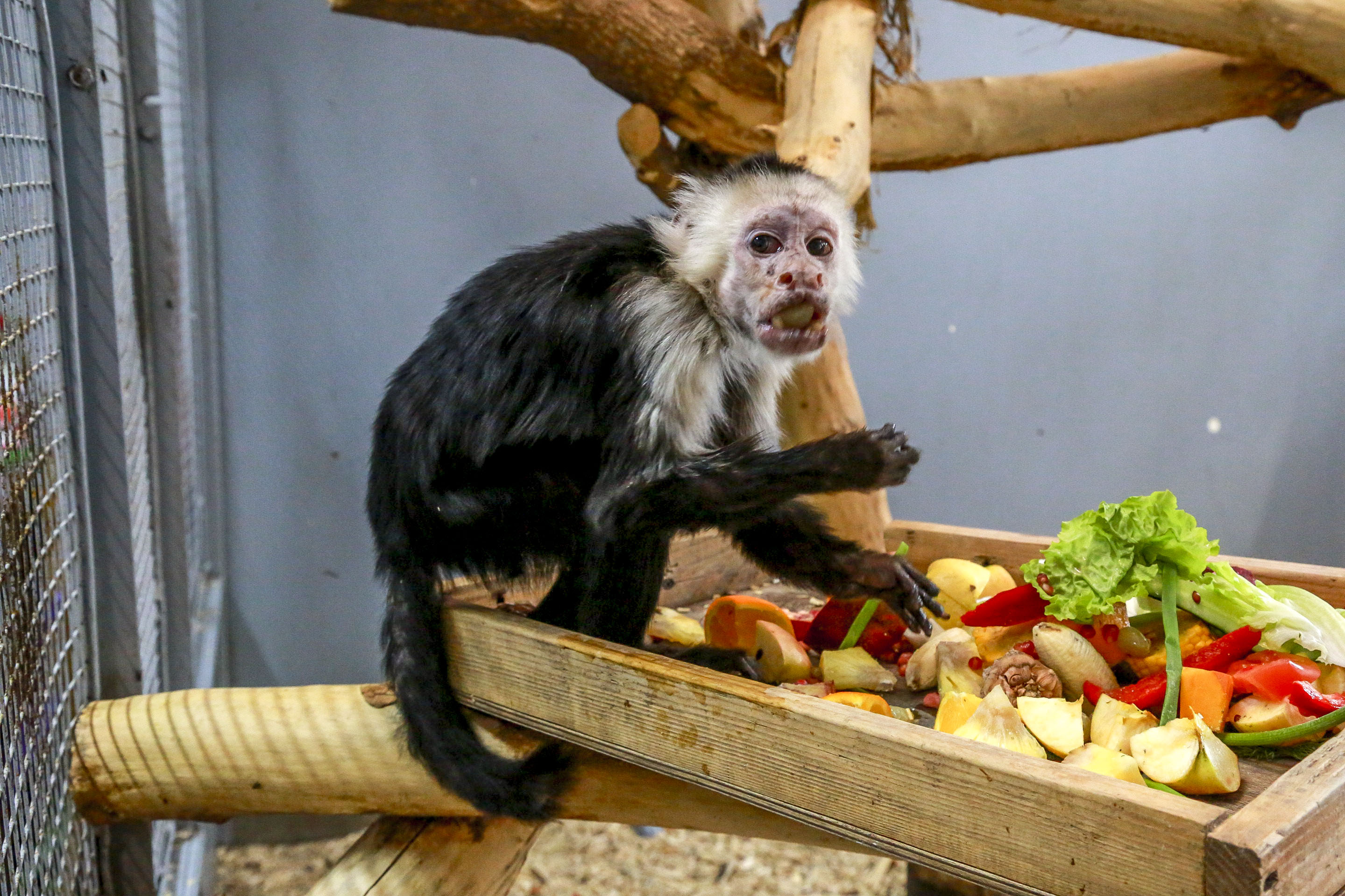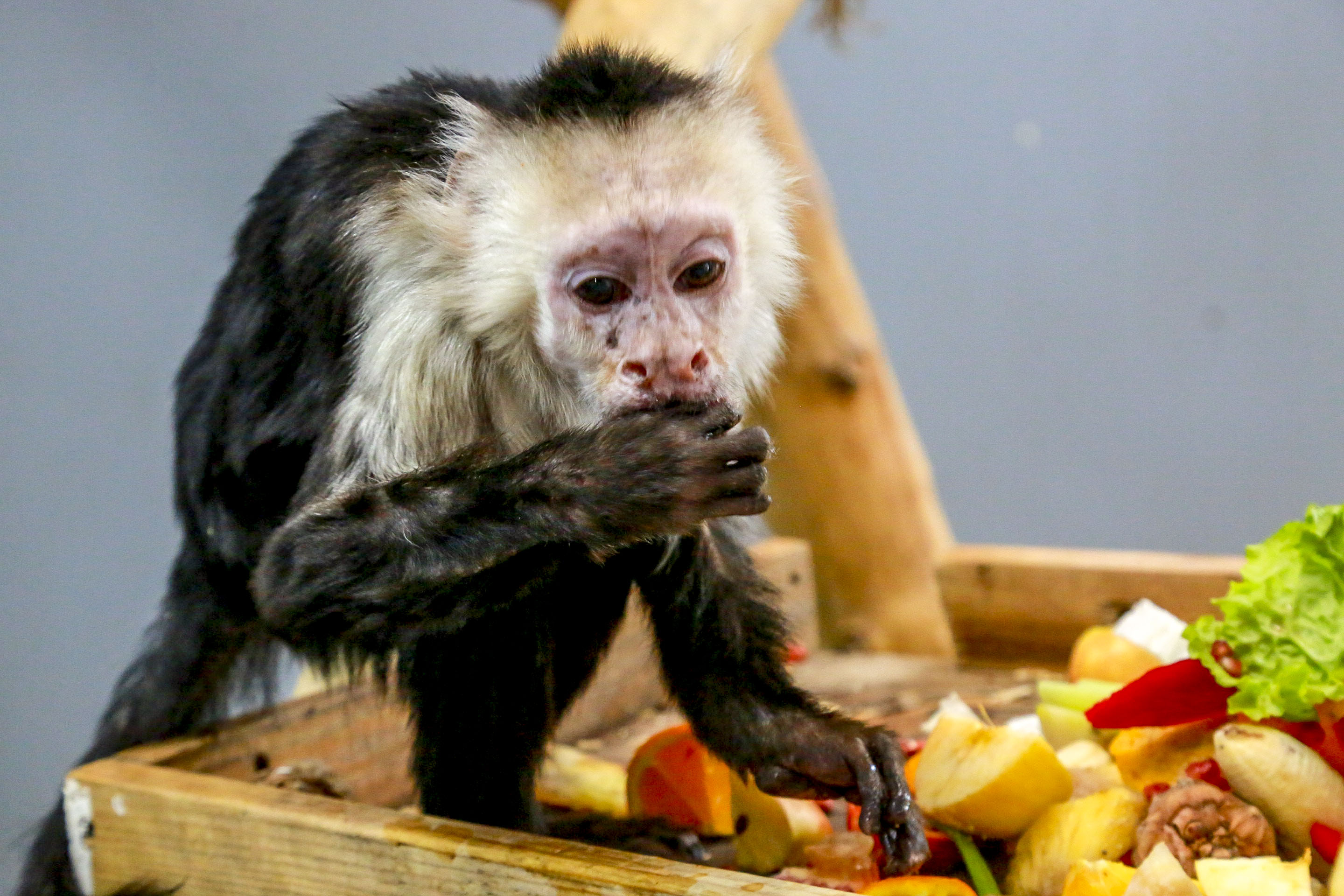 Белоплечий капуцин по кличке Андрей похож на старца, которых обычно изображали средневековые художники на своих полотнах: приподнятые плечи, втянутая шея и мудрый взгляд из-под насупленных бровей.