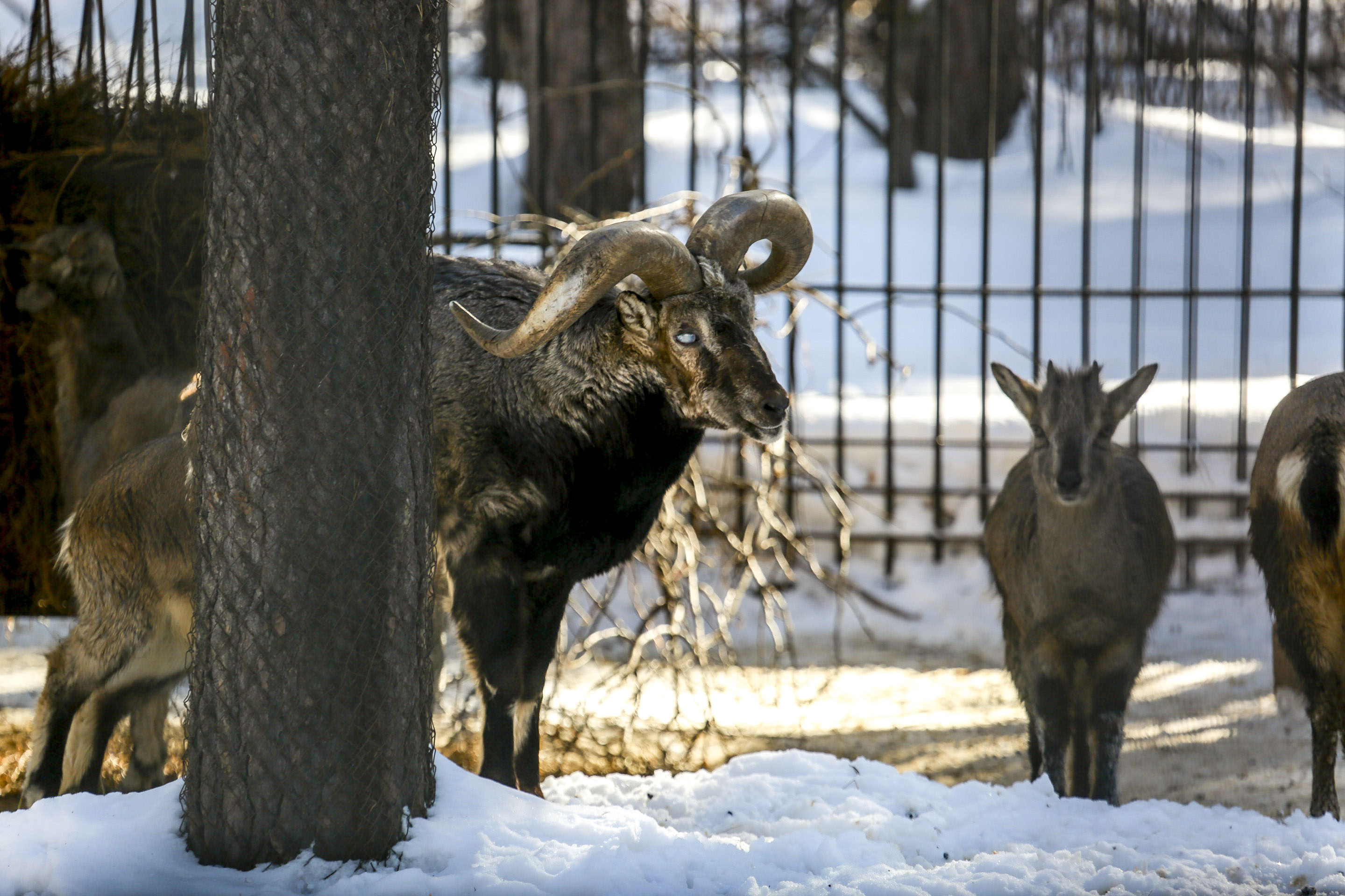 Голубой баран с красивыми рогами — вожак своего стада. Он родился в 2004 году в Москве, а к нам в зоопарк приехал в четырёхлетнем возрасте. На протяжении вот уже 16 лет Шилкар — отец практически всех малышей, которые рождаются в семействе.