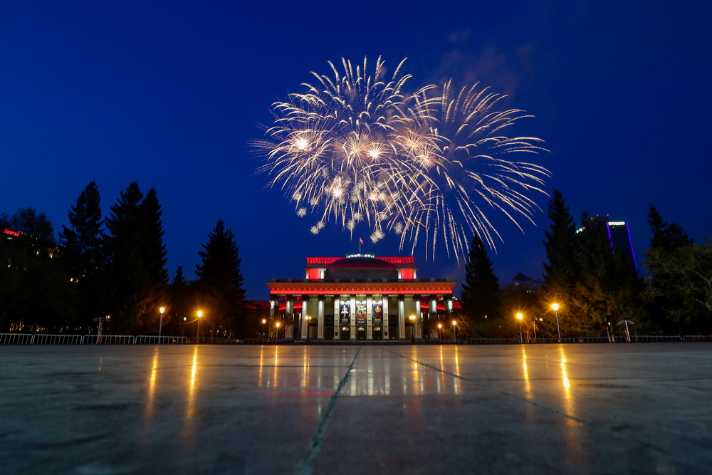 В завершение праздничного дня в Новосибирске прогремят военный салют и шесть фейерверков.
