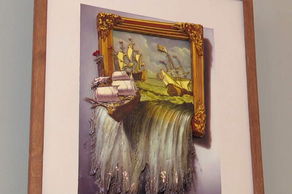 На картинах — цветы, водопады, переулки европейских городов. Каждое изображение выглядит как волшебный портал в другое измерение. Этот обман зрения создали участники творческой мастерской из Краснообска. Здесь же можно посмотреть и другие их работы с использованием джутовой филиграни, вязания и флорентийской вышивки.
