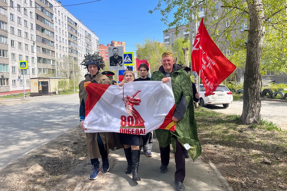 Шествие с портретами фронтовиков организовали активисты ТОС «Нива». Вместе с соседями они прошли от библиотеки имени Я. Гашека к скверу «Молодёжный». Там спели песни о войне и станцевали вальс.