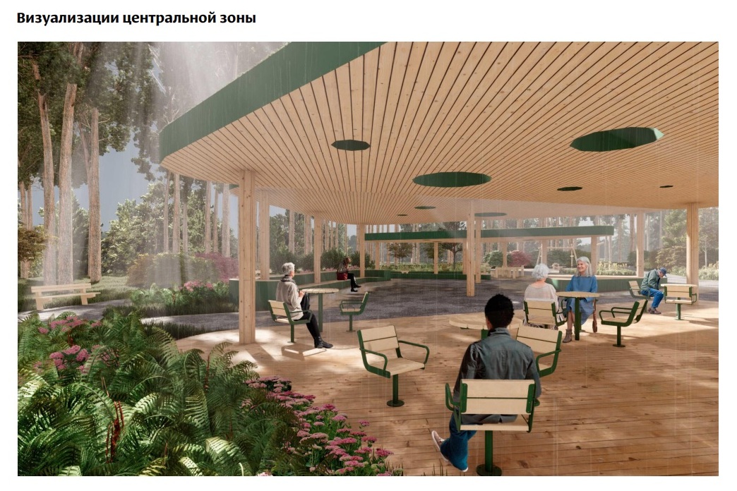 На территории бора хотят обустроить смотровые площадки, установить фонари, скамейки и лежаки, преобразить входную группу. Построят визит-центр с прилегающей парковкой на 22 машино-места. В центральной части парка разместят амфитеатр для проведения мероприятий, игровые локации с песком, детский городок и зону тихого отдыха под навесом со столами и стульями.