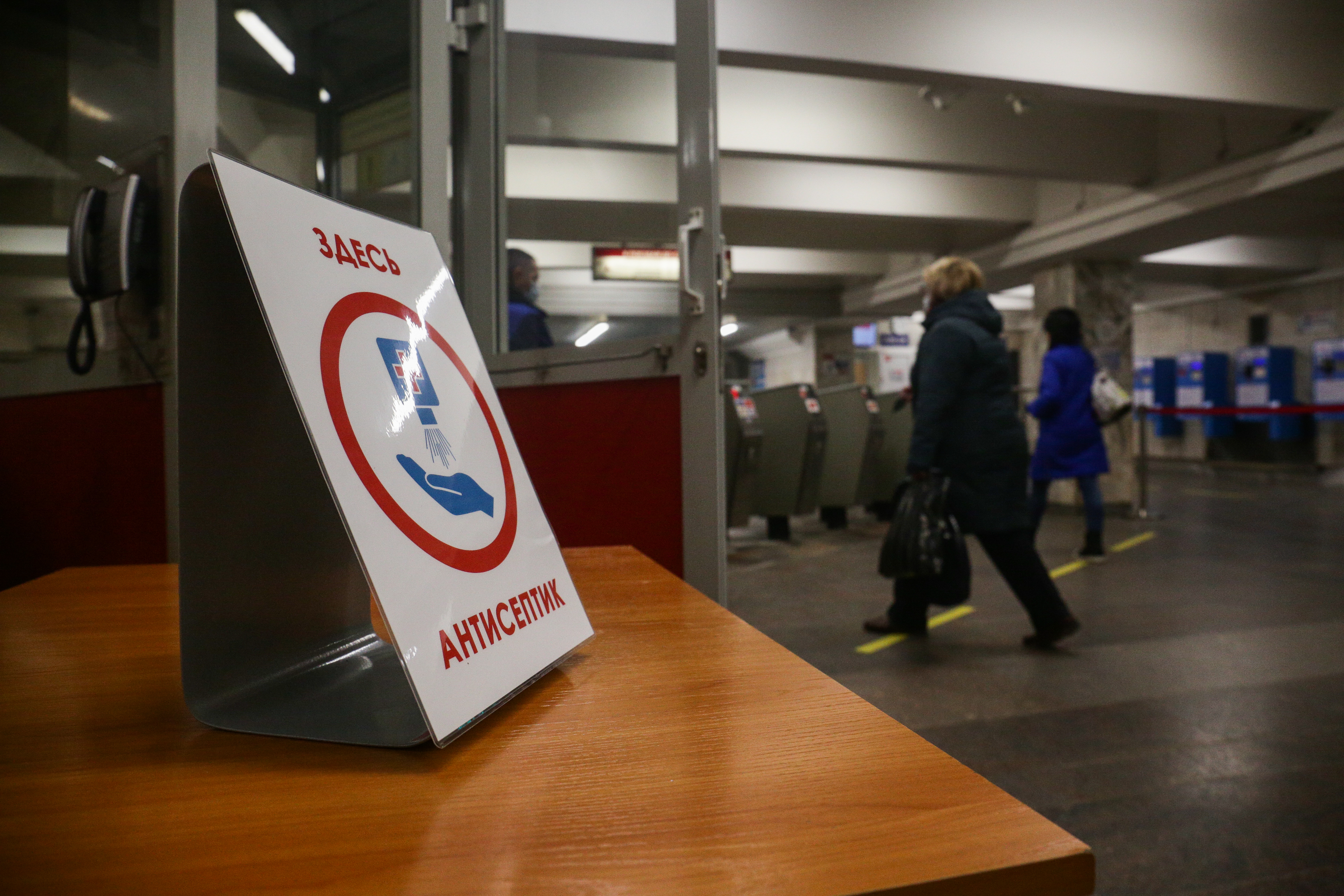С 7 апреля Новосибирский метрополитен даёт пассажирам возможность обработать руки антисептиком. Бутылки с обеззараживающей жидкостью стоят на столах перед турникетами на всех станциях.