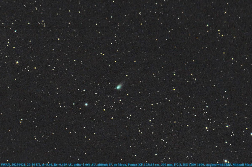«В первой половине апреля она была более активна, в частности, демонстрировала длинный ионный хвост, однако в последние несколько дней, несмотря на приближение к Солнцу, её яркость перестала расти, а хвост практически исчез. Это указывает на то, что комета, вероятно, разрушается и может полностью распасться в ближайшие дни или недели», — считает Михаил Маслов.