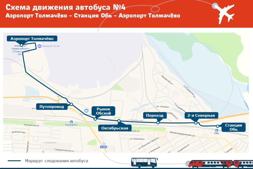 Новый мультимодальный маршрут по поручению губернатора Андрея Травникова запускают в понедельник, 9 июня, в Новосибирской области. Автобус №4 будет ежедневно курсировать между аэропортом Толмачёво и станцией Обь.