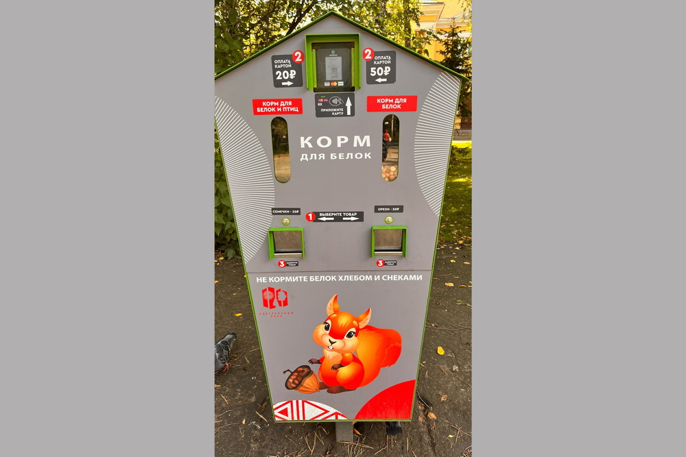 Порцию фундука для белок продают за 50 рублей, а кедровых орехов — за 75. Оплатить покупку можно банковской картой.