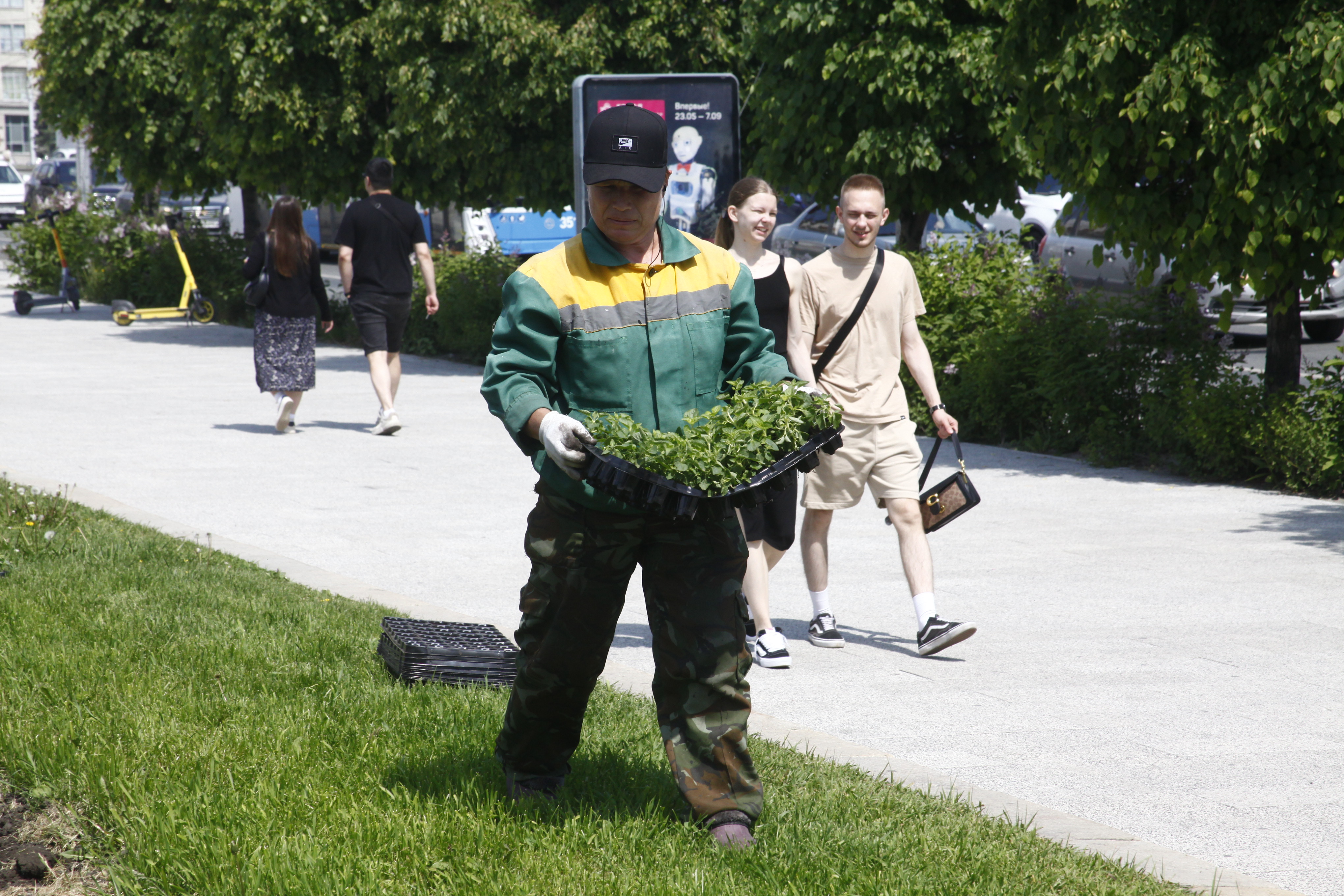 Сотрудники Горзеленхоза сегодня высаживали цветочную рассаду в разных районах.