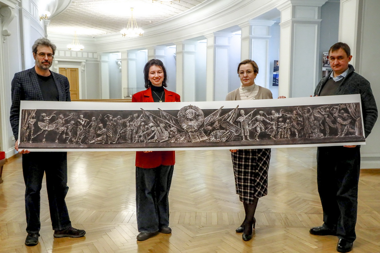 — Очень жаль, что за двумя рядами колонн невозможно посмотреть на барельеф целиком. Ни одного полного изображения этого уникального произведения ранее сделать не удавалось, хотя попытки были. К счастью, у Алексея Школдина это получилось, и теперь каждый зритель театра сможет целиком увидеть эту потрясающую работу Веры Штейн.