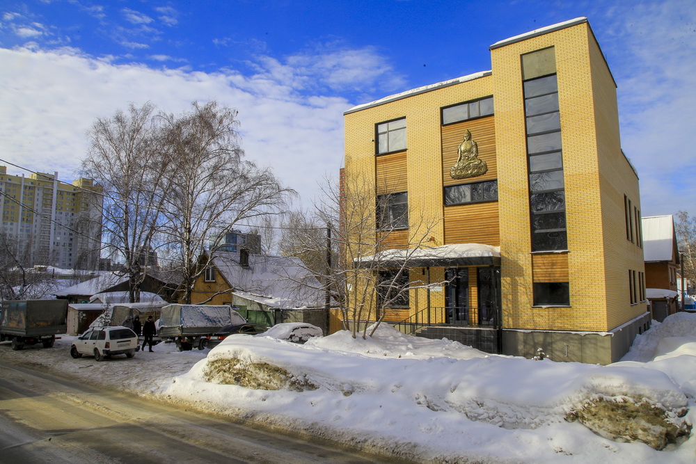 Барельефом золотого Будды украсили фасад здания в Новосибирске
