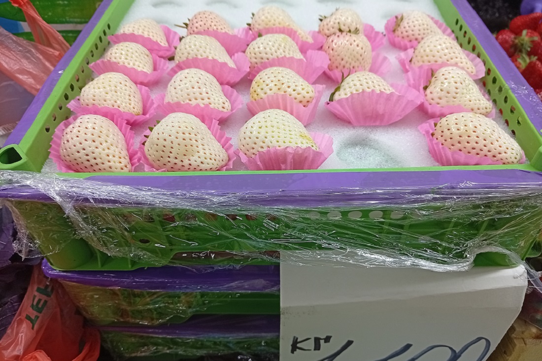 Во фруктово-овощных лавках появилась необычная ягода — клубника сорта «Белоснежка». По словам продавцов, завезли диковинный продукт из Китая.
