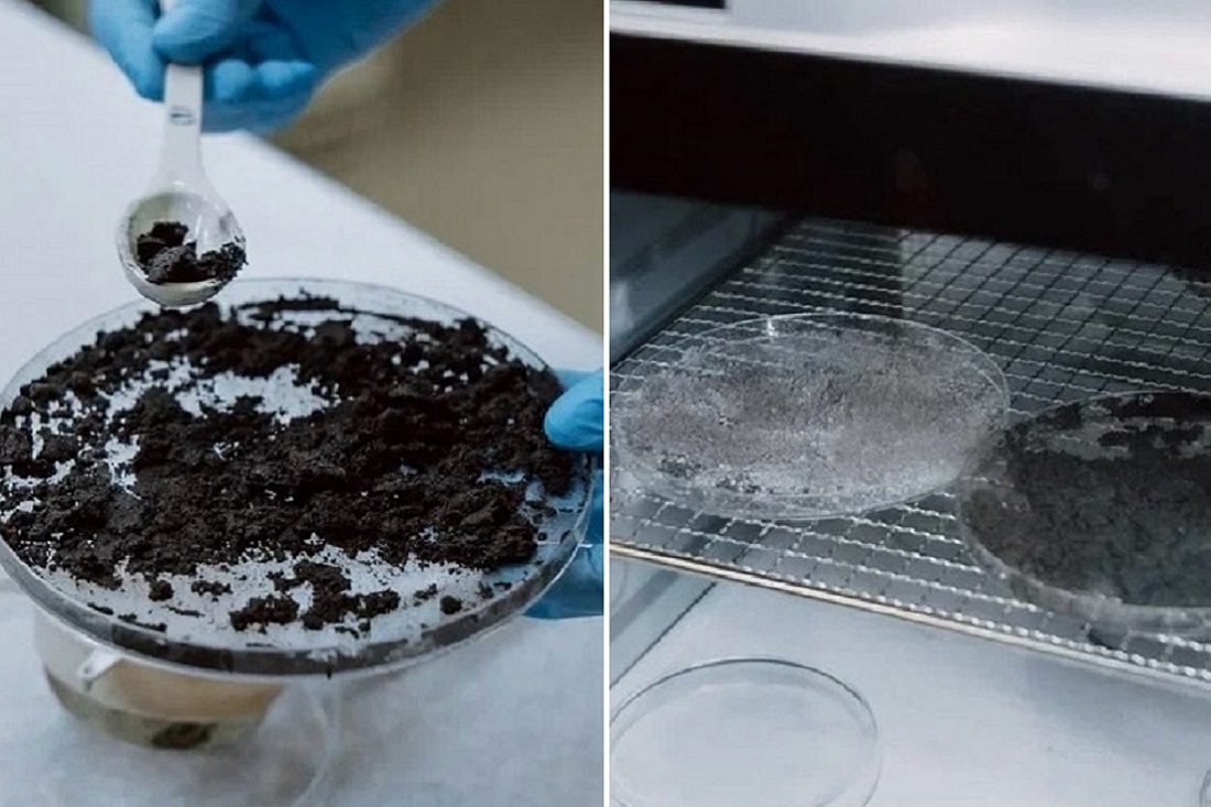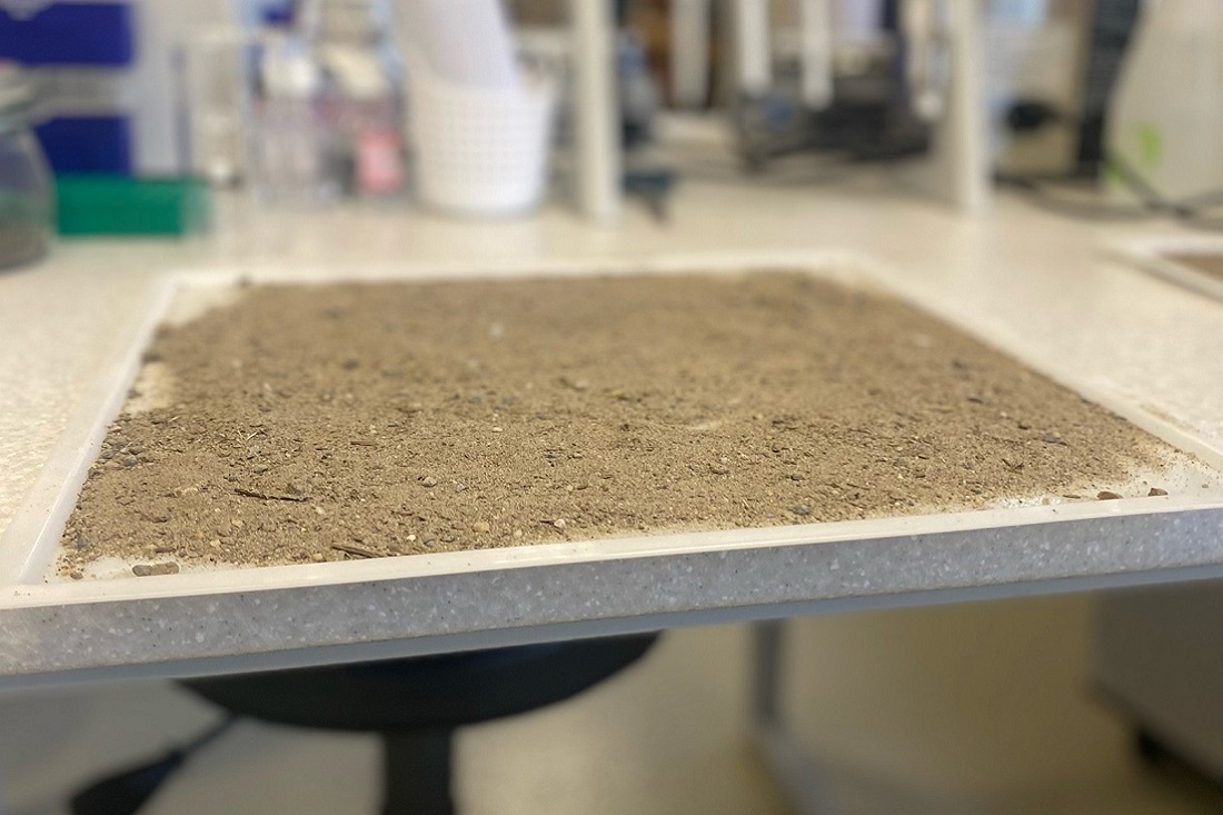 «Этой плёнке две недели. Если мы сдуем, то у нас от силы ветра ничего не произойдёт, потому что плёнка очень плотно прилегает к пыли, образуя агломераты. В таком состоянии она будет находиться, если мы, например, обработаем вагоны», — демонстрирует действие препарата младший научный сотрудник научно-образовательного центра «Технологии биополимеров» Анна Пронченко.