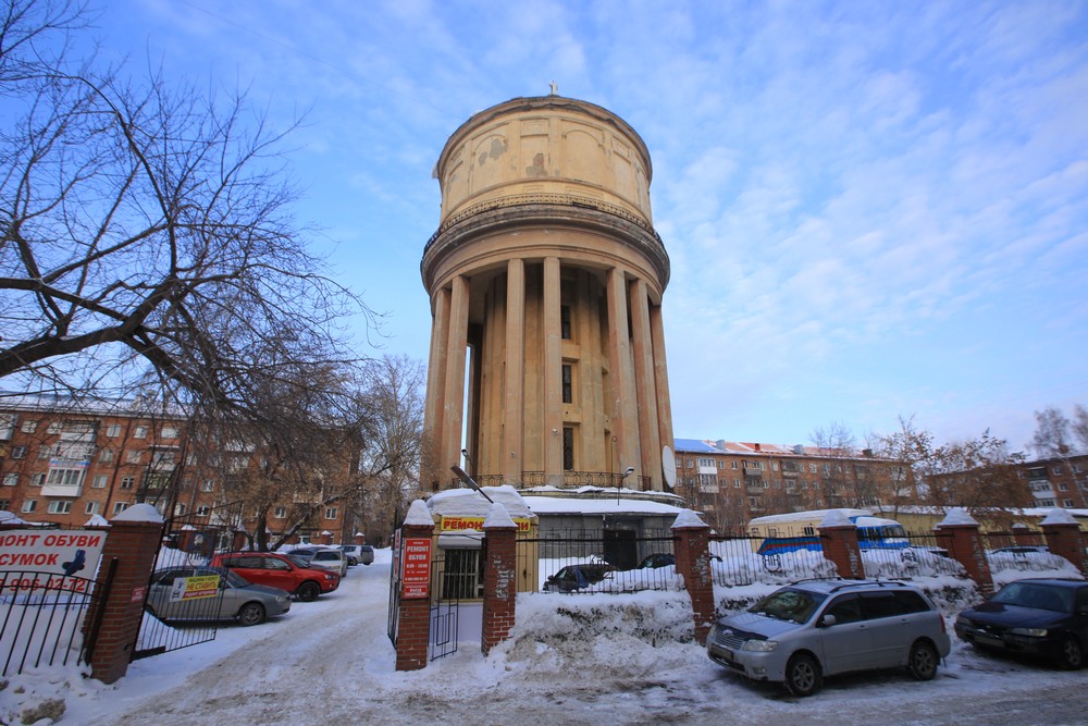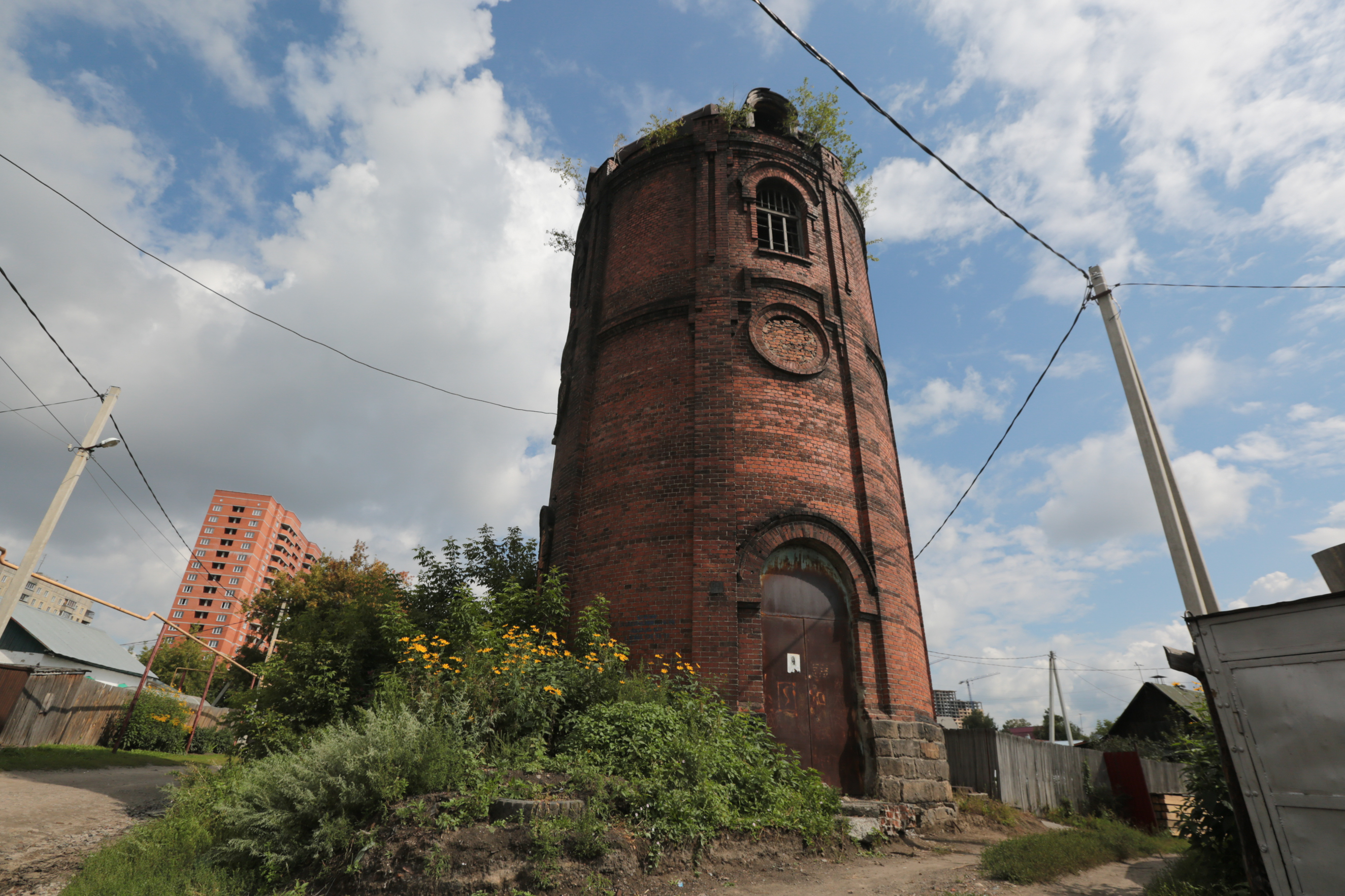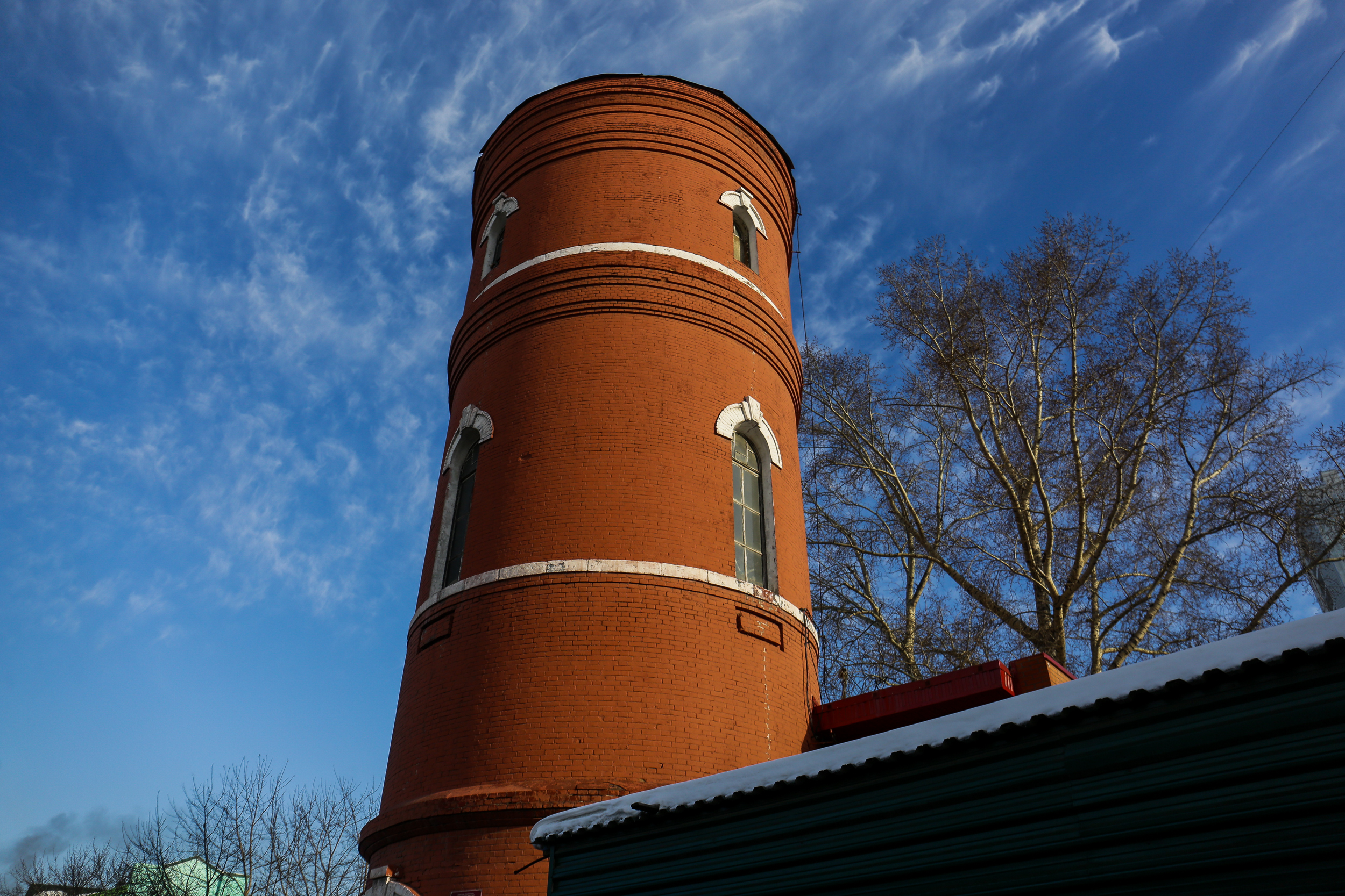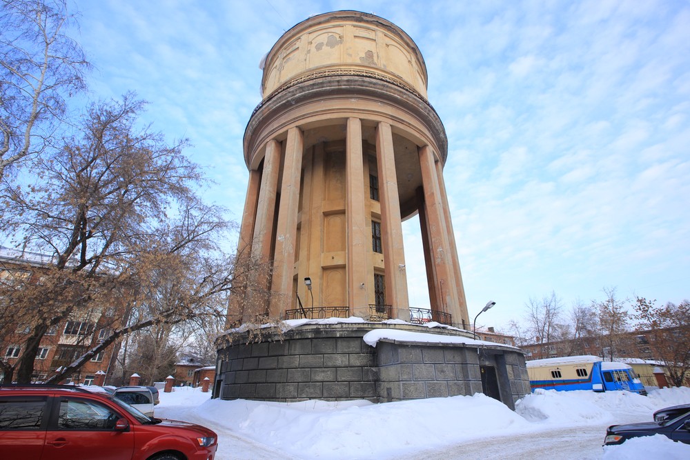 Это водонапорная башня первой централизованной системы водоснабжения Новосибирска. Высота сооружения — 29 метров.