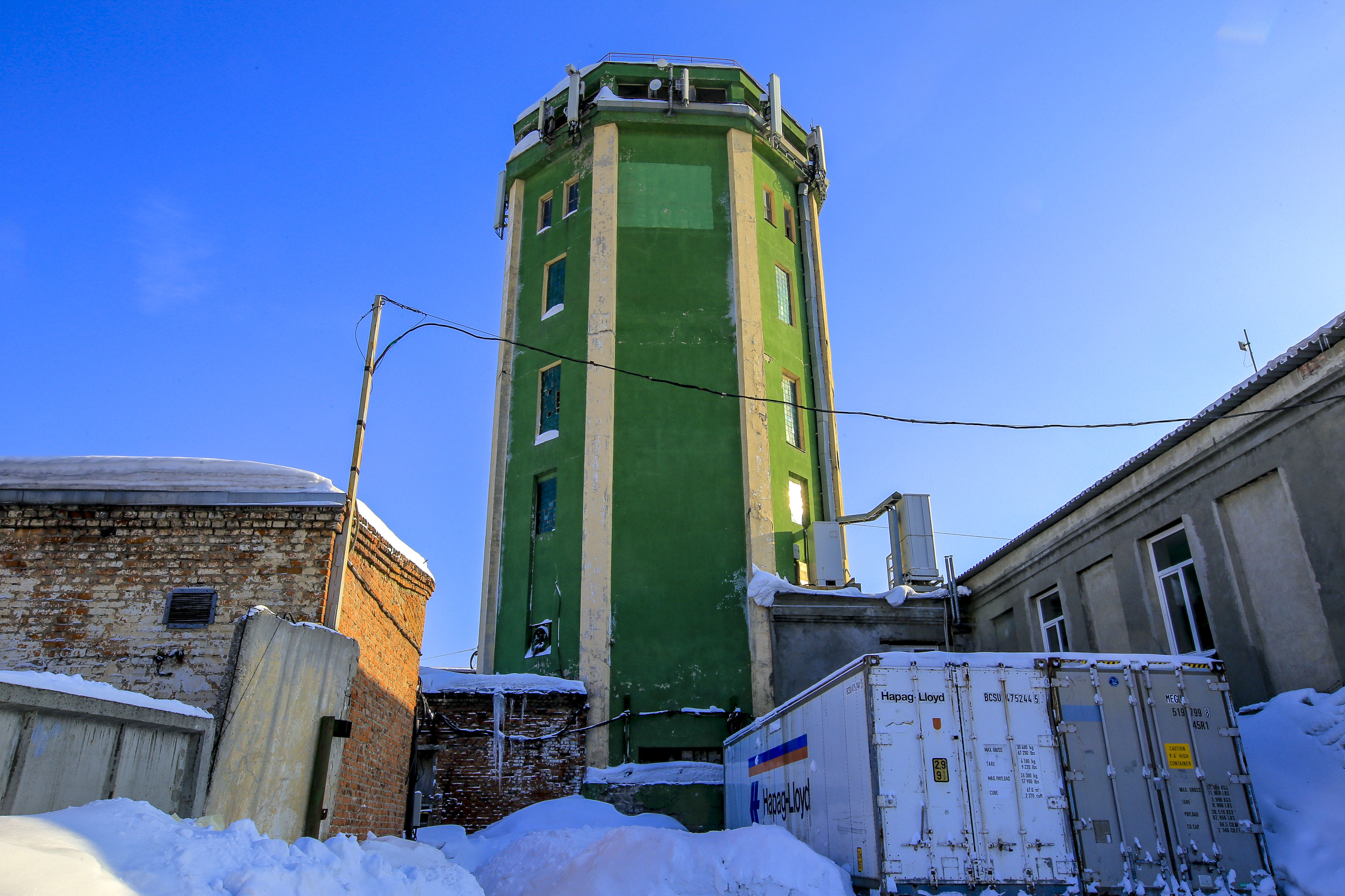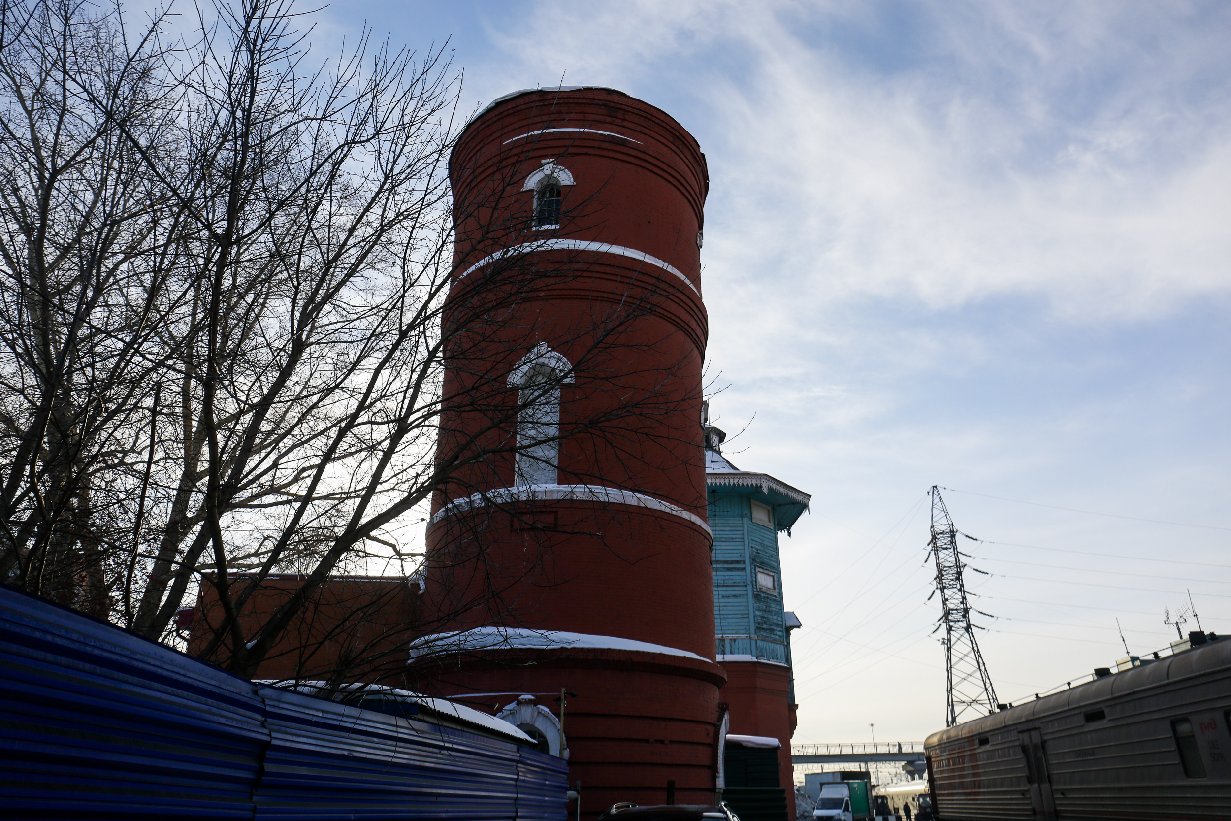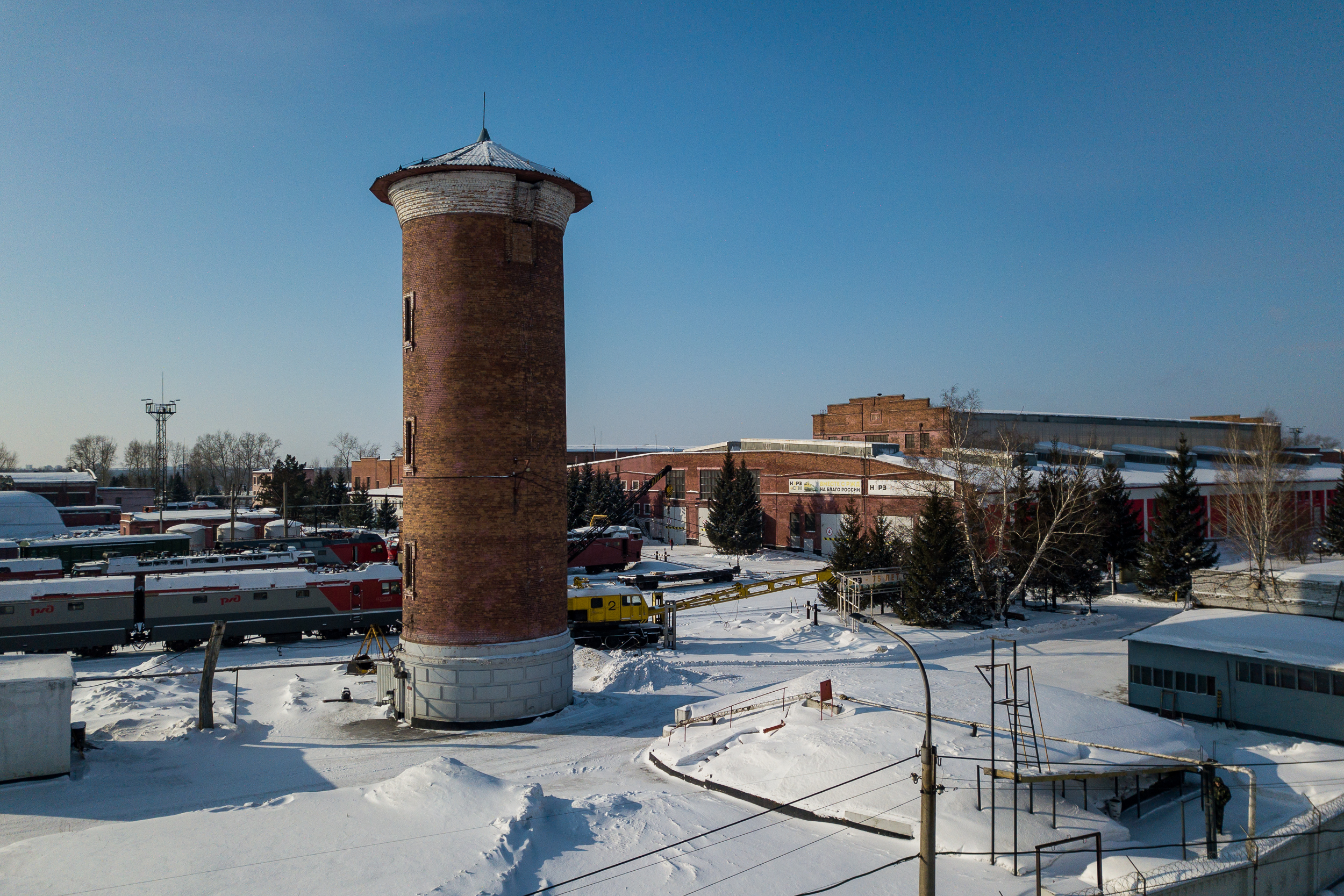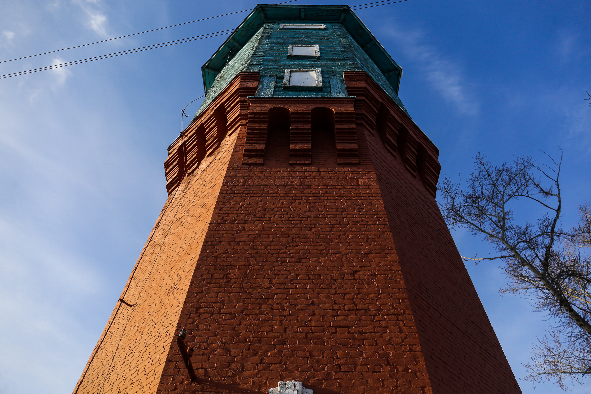 Это водонапорная башня первой централизованной системы водоснабжения Новосибирска. Высота сооружения — 29 метров.