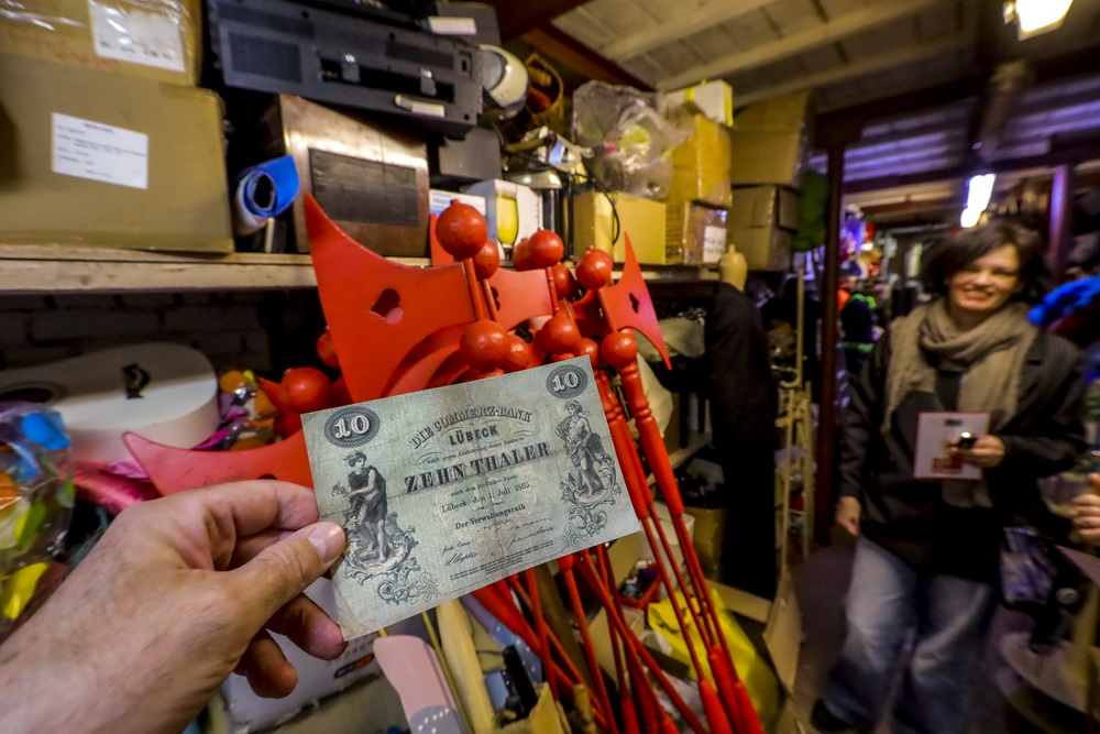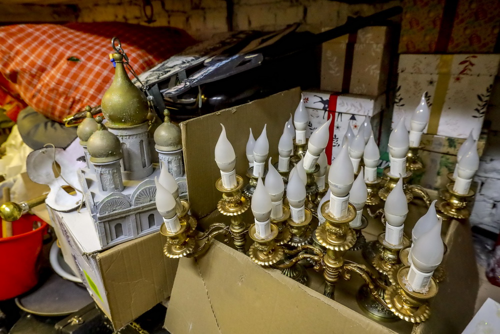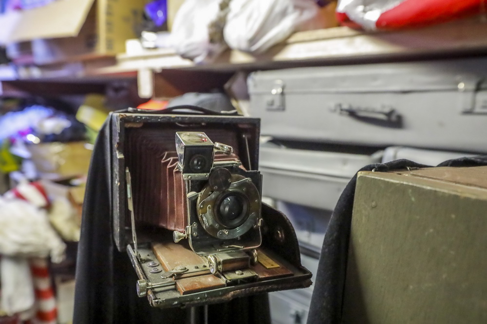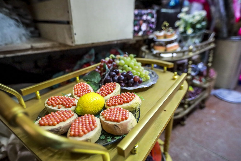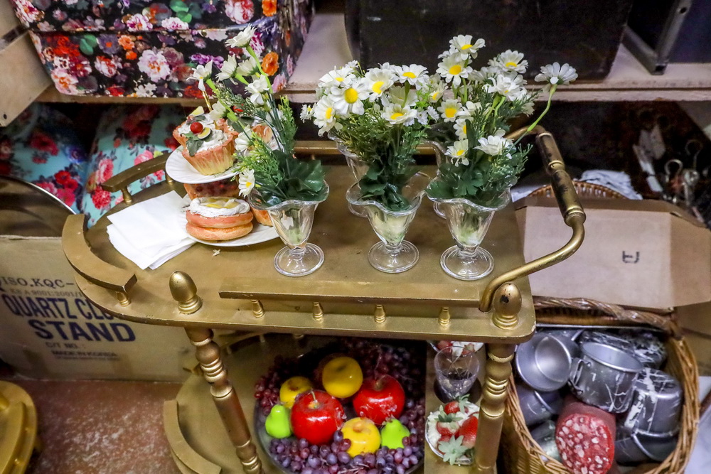 Здесь есть шпаги мушкетёров, коробки с деньгами, колбаса и бутерброды с красной икрой, огромная корзина мягких снежков, которыми дети играли на новогодних представлениях. Целый угол выделили для музыкальных инструментов. По словам реквизитора, если как следует поискать, то в залежах можно обнаружить больше десятка самоваров и столько же разномастных фотоаппаратов.