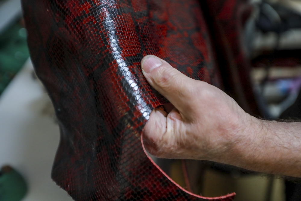 Тут же есть небольшой склад с запасами отрезов натуральной кожи.