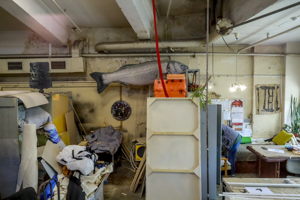 В художественно-декорационном цехе работают художники и бутафоры. В этом помещении множество интересных вещиц. Например, огромная рыба, списанная из спектакля «Великан Бобов». Тут же хранят часть декораций для идущих спектаклей. Основной склад находится в здании по соседству.