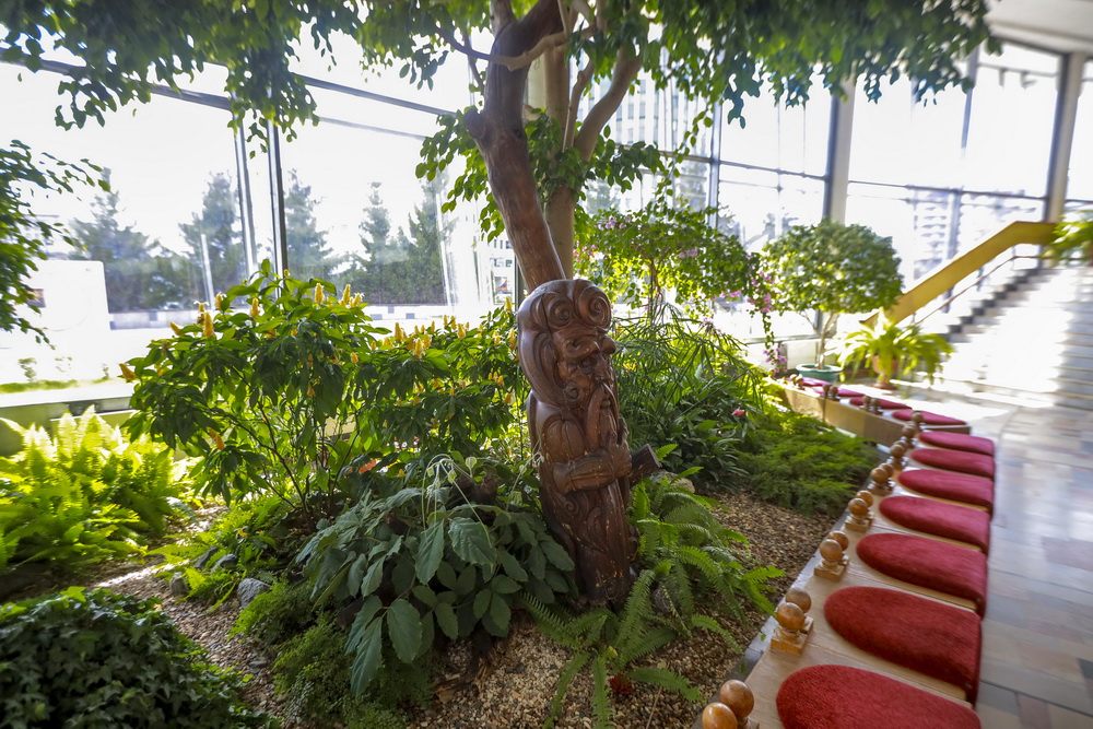 В фойе первого этажа находится уникальный зимний сад. Сейчас там цветут бугенвиллеи и спатифиллумы, плодоносит лимонное дерево. В штате «Глобуса» есть садовник, который следит за растениями.