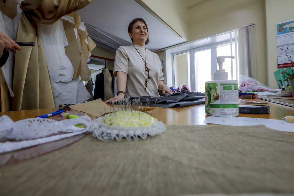 Начальник пошивочного цеха Надежда Цвях работает в театре с 2018 года. Сейчас коллектив готовит костюмы к новому спектаклю «Отрочество», согласовывает с художником окончательный этап.