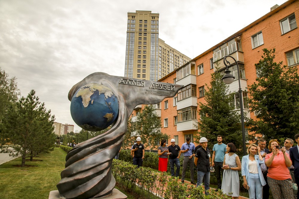 — Мы сейчас находимся в самом начале Аллеи друзей. Здесь стоит памятная стела, и на ней обозначено, что это — подарок жителям Новосибирска. Дорогой, надо сказать, получился подарок.
